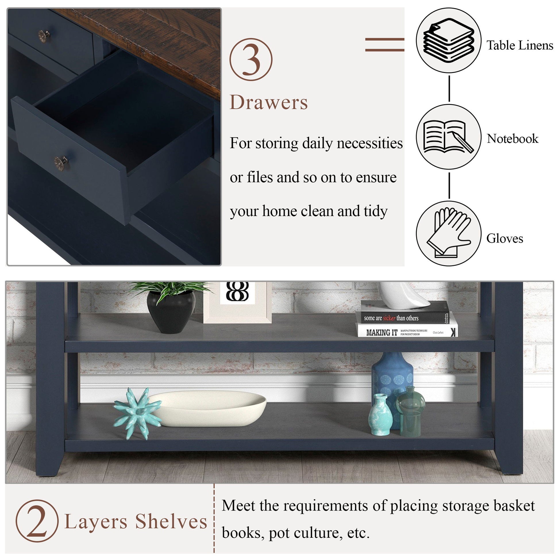 49'' Rectangular Solid 3 Drawer 2 Shelf Console Table - Blue