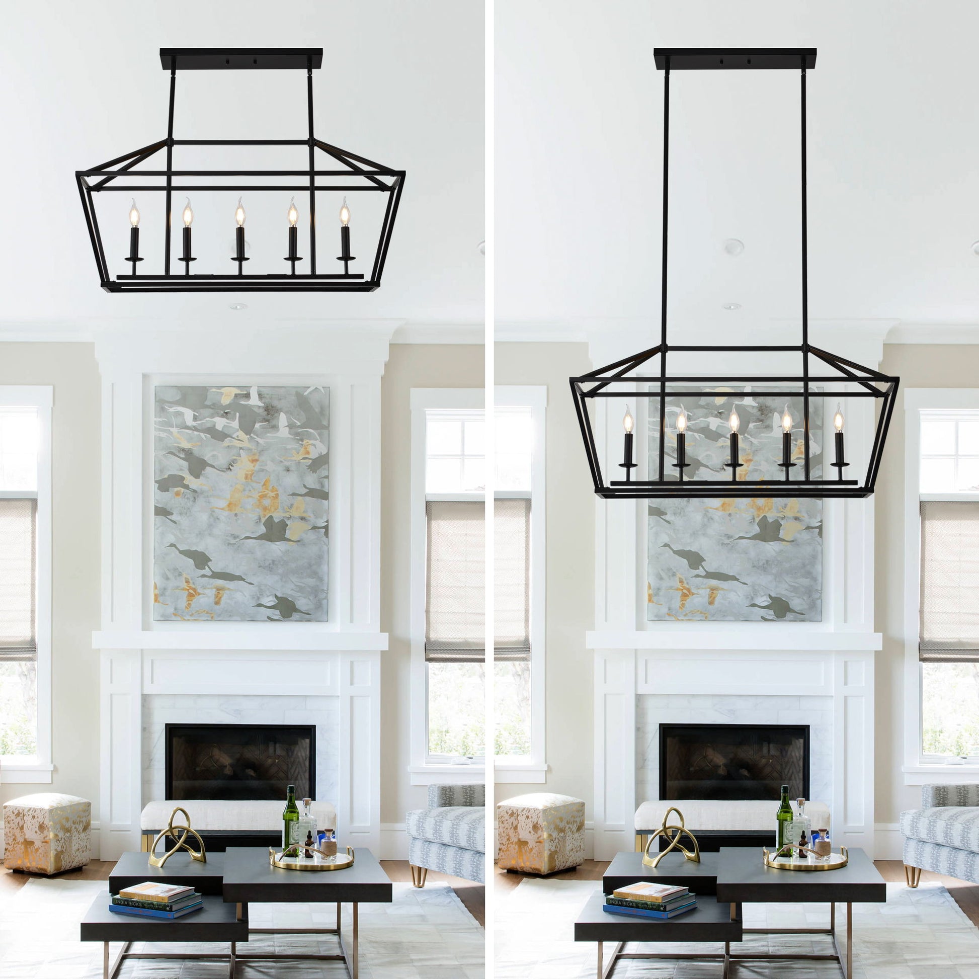 5 Light Farmhouse Kitchen Island Lighting, 5 Light Industrial Linear Chandelier For Dining Room Metal Hanging Pendant Light Fixture For Bedroom Living Room Hallway Conference Room - Matte Black