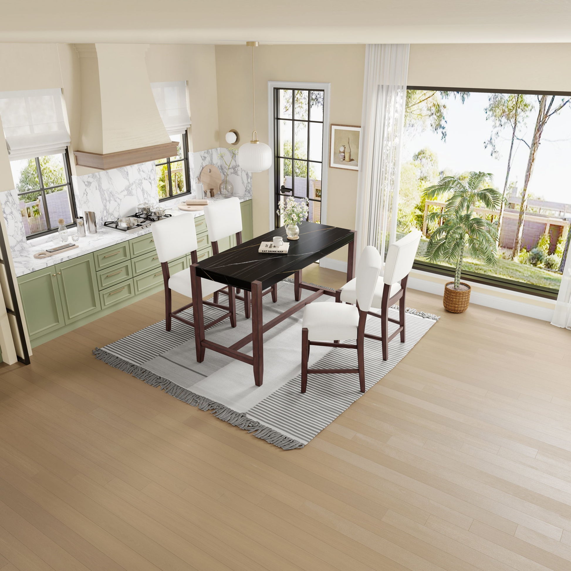 - Modern 5-Piece Set: Includes a sleek faux marble dining table and four linen-upholstered chairs with mid-century modern design, perfect for elevating any dining space.