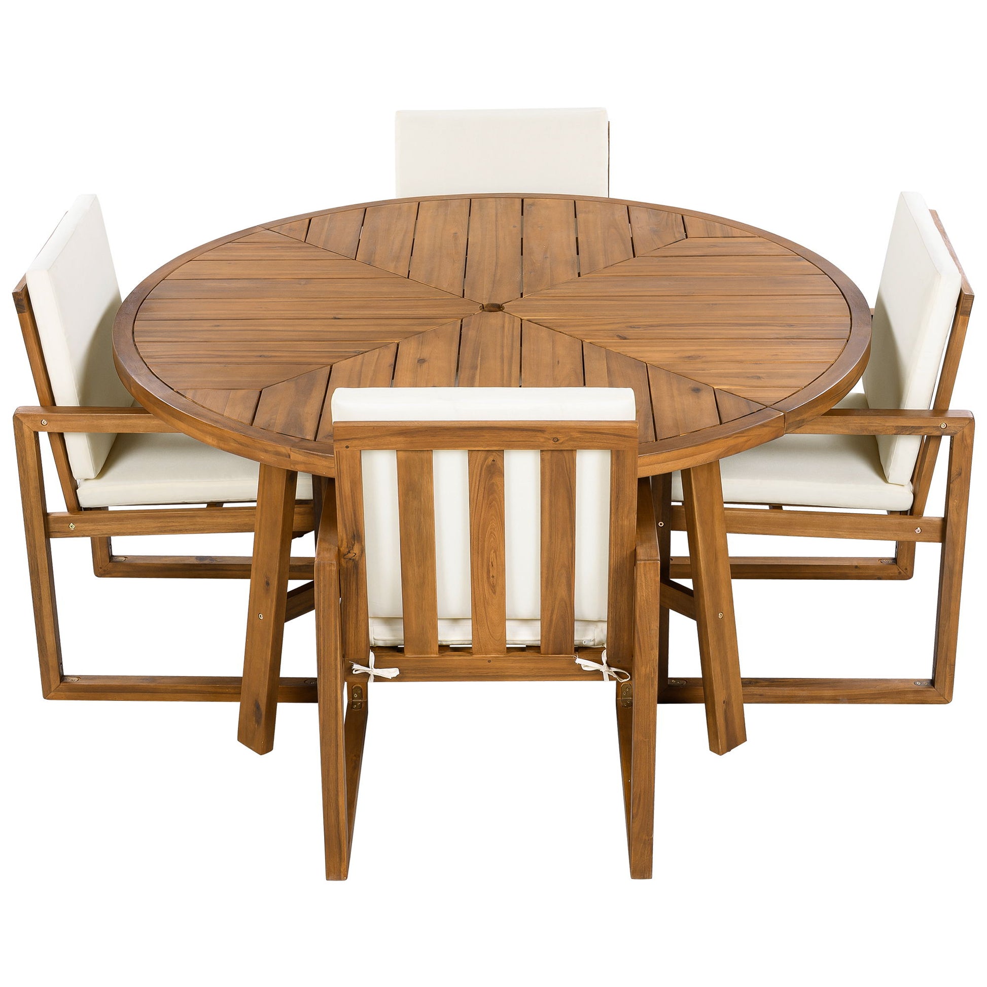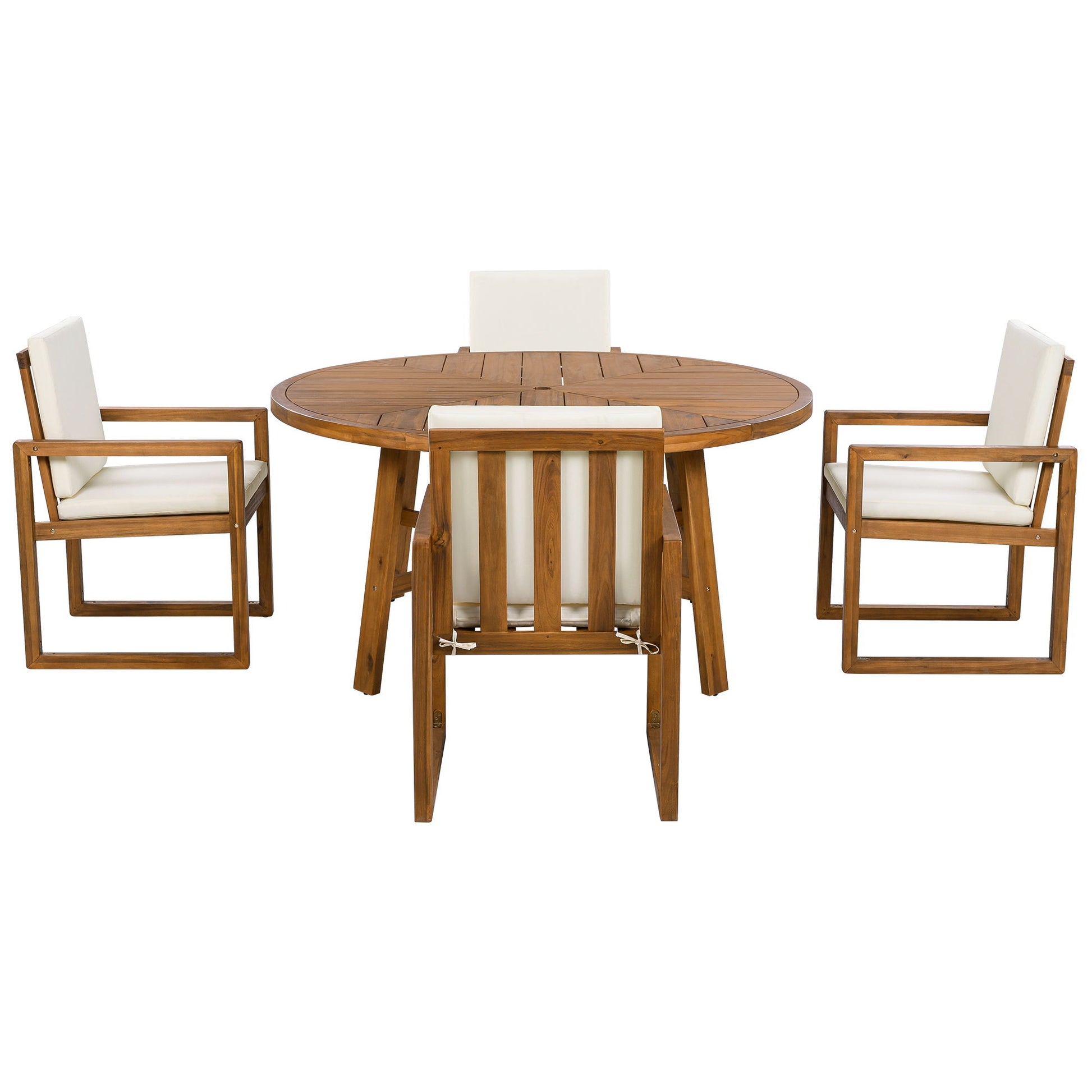 5 Piece Outdoor Patio Dining Set With 4 Armchairs And Table - Beige