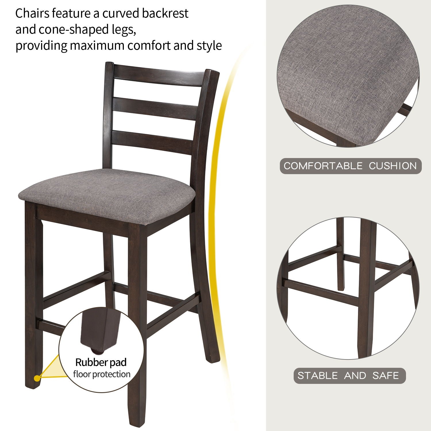 - Table and Chair Dimensions: Table - 35.4''L x 35.4''W x 36.2''H; Chair - 17.5''L x 19.7''W x 39.2''H.
