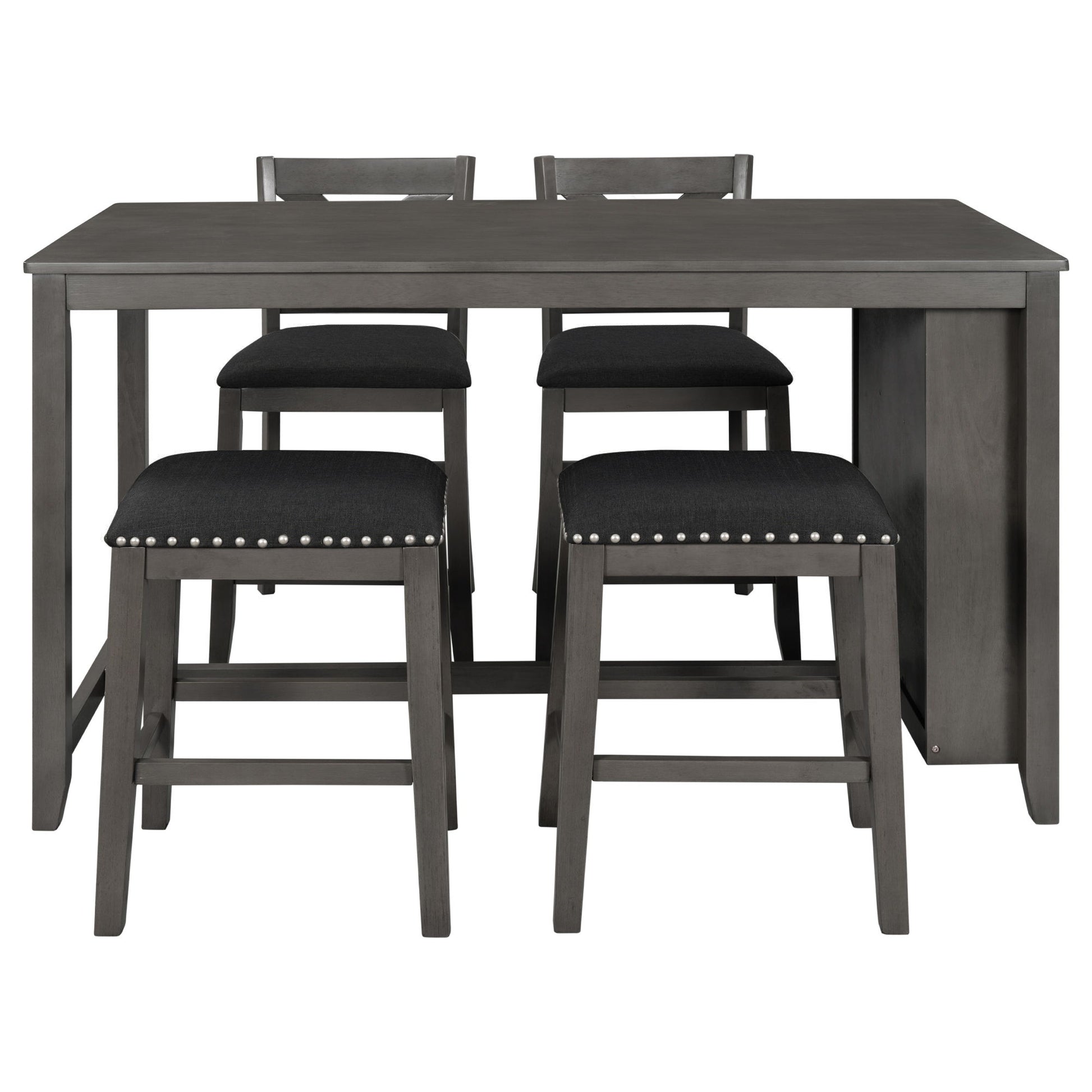 5 Pieces Counter Height Rustic Farmhouse Dining Room Wooden Bar Table Set With 2 Stools And 2 Chairs