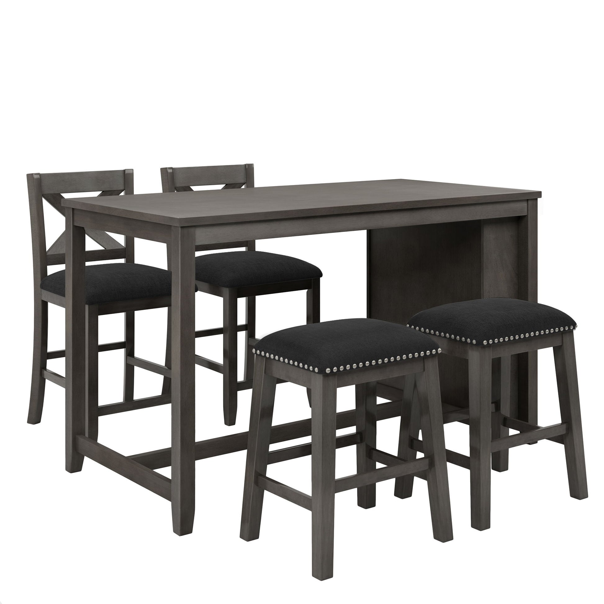- Dimensions and Packaging: Table measures 59x29.5x36 inches, chairs 19.5x18x40.5 inches, and stools 17.5x13.2x25.6 inches. Set is shipped in three packages that may arrive separately.