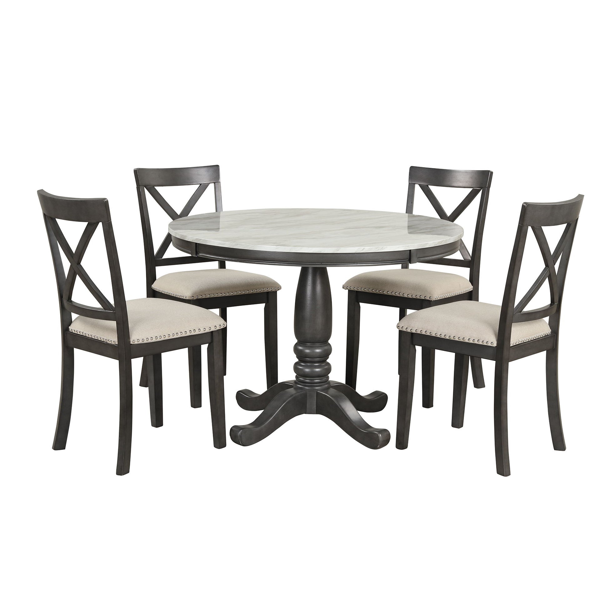 5 Pieces Dining Table And Chairs Set For 4 Persons, Kitchen Room Solid Wood Table With 4 Chairs