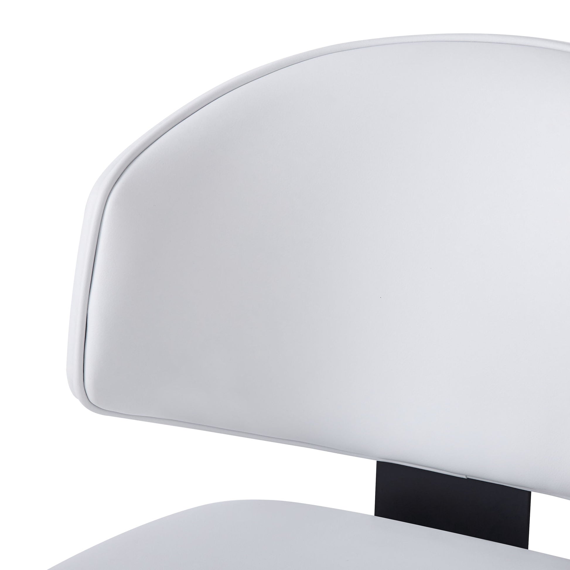- Faux Leather: The seat of this dining chair is made with faux leather which is reinforced by a flexible weave underneath.