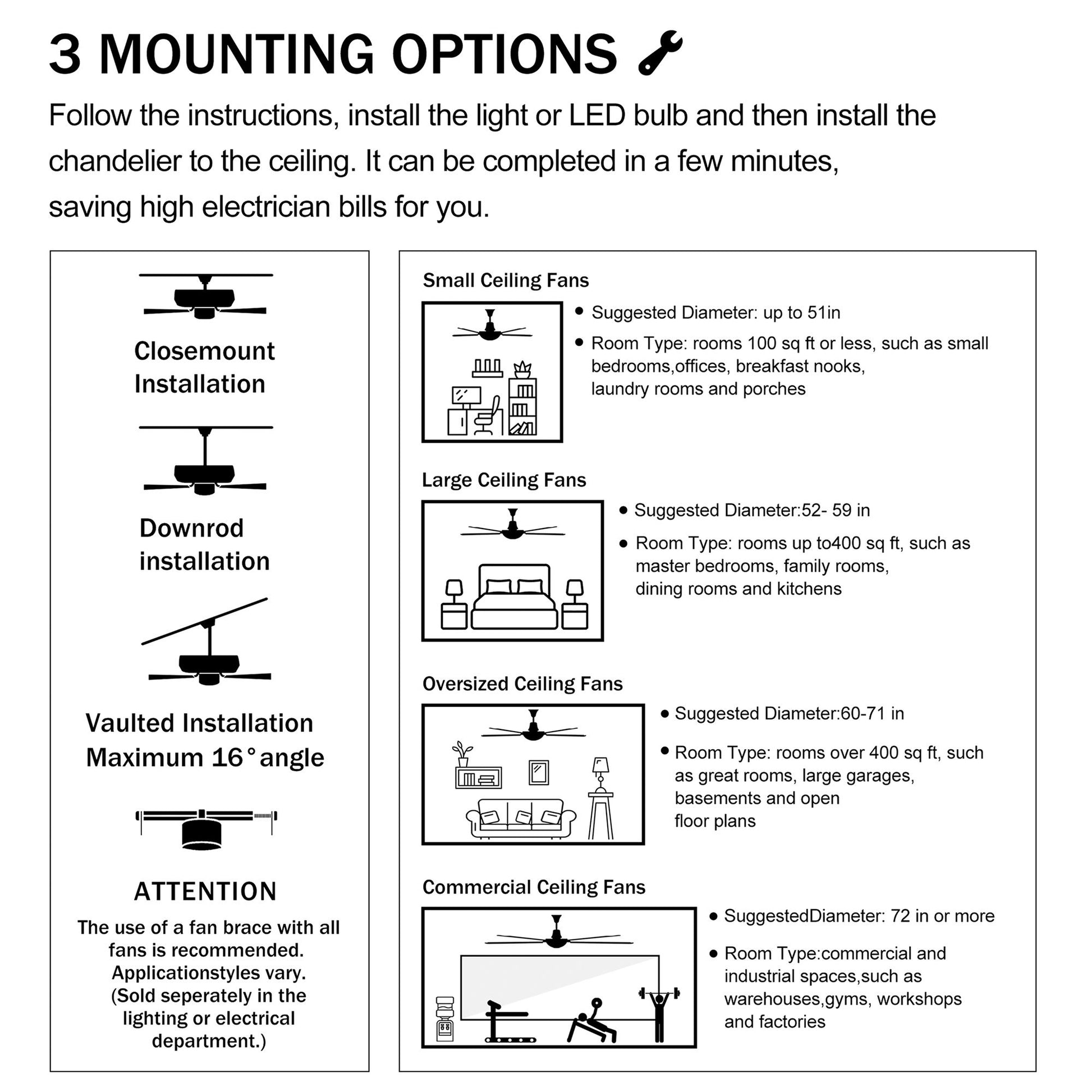 - Versatile Installation: Compatible with standard or angled ceilings, includes two down rods.