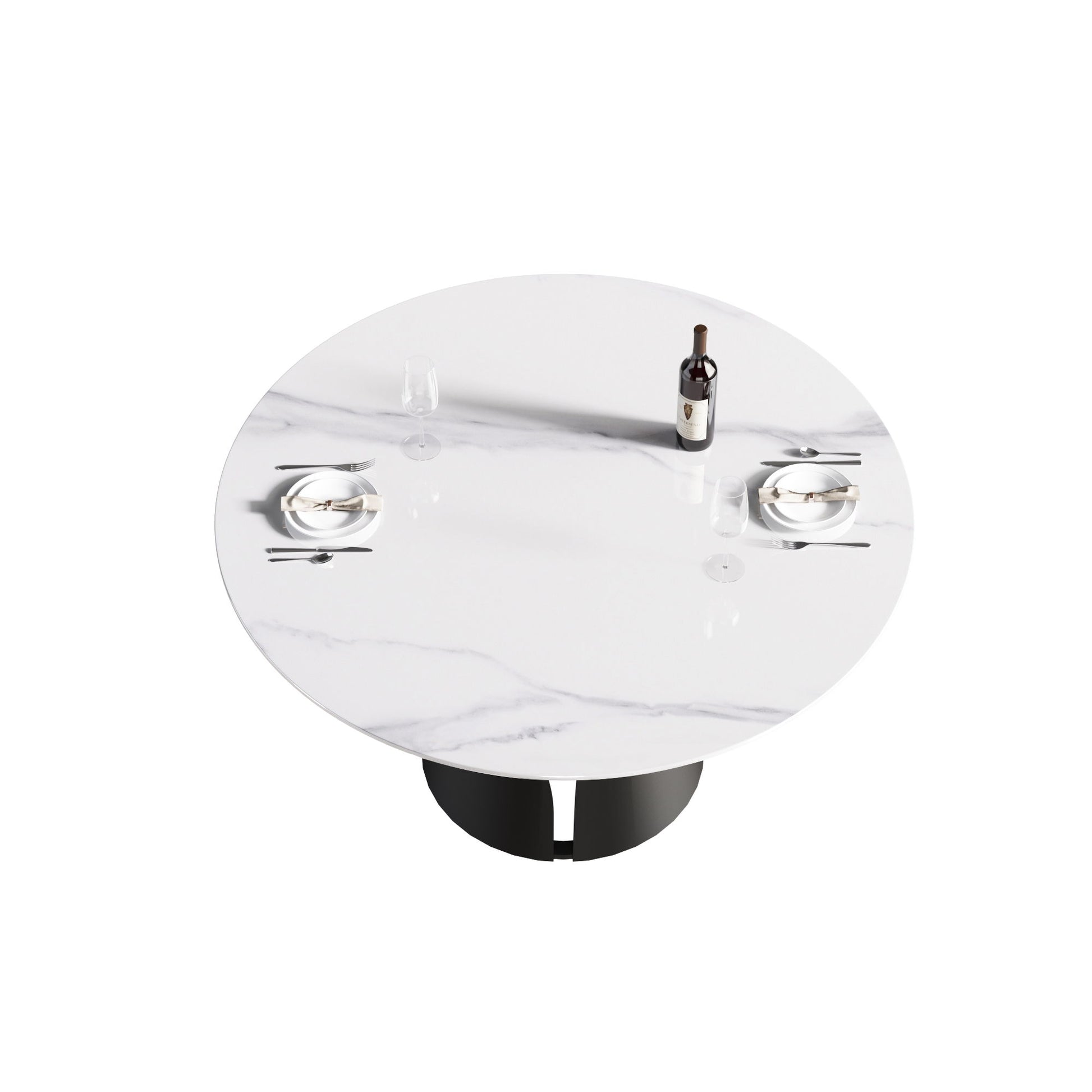 53.15" Modern Artificial Stone Round Carbon Steel Base Dining Table, Can Accommodate 6 People - White / Black