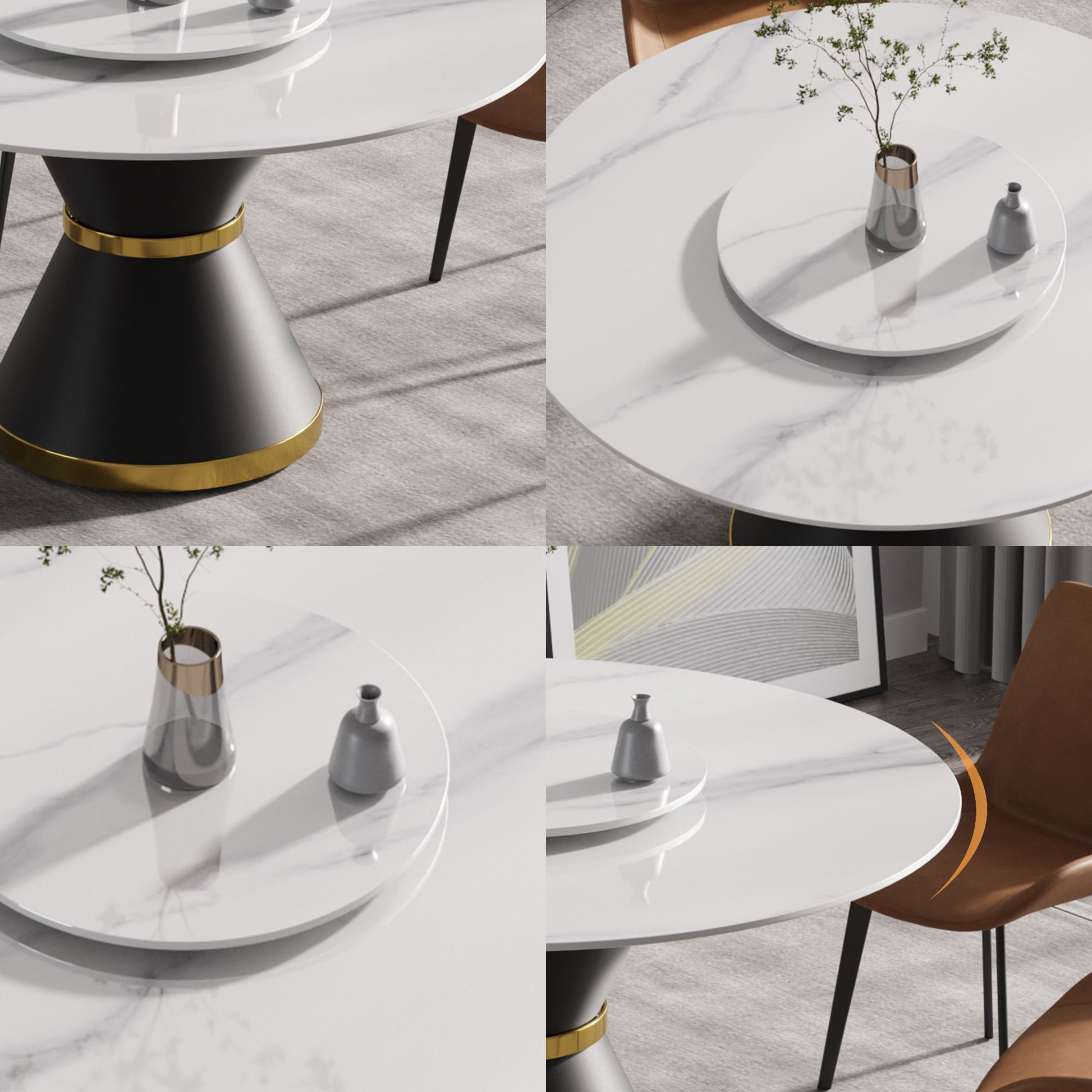 53" Modern Artificial Stone Round Carbon Steel Base Dining Table, Can Accommodate 6 People, Artificial Stone Turntable - White / Black