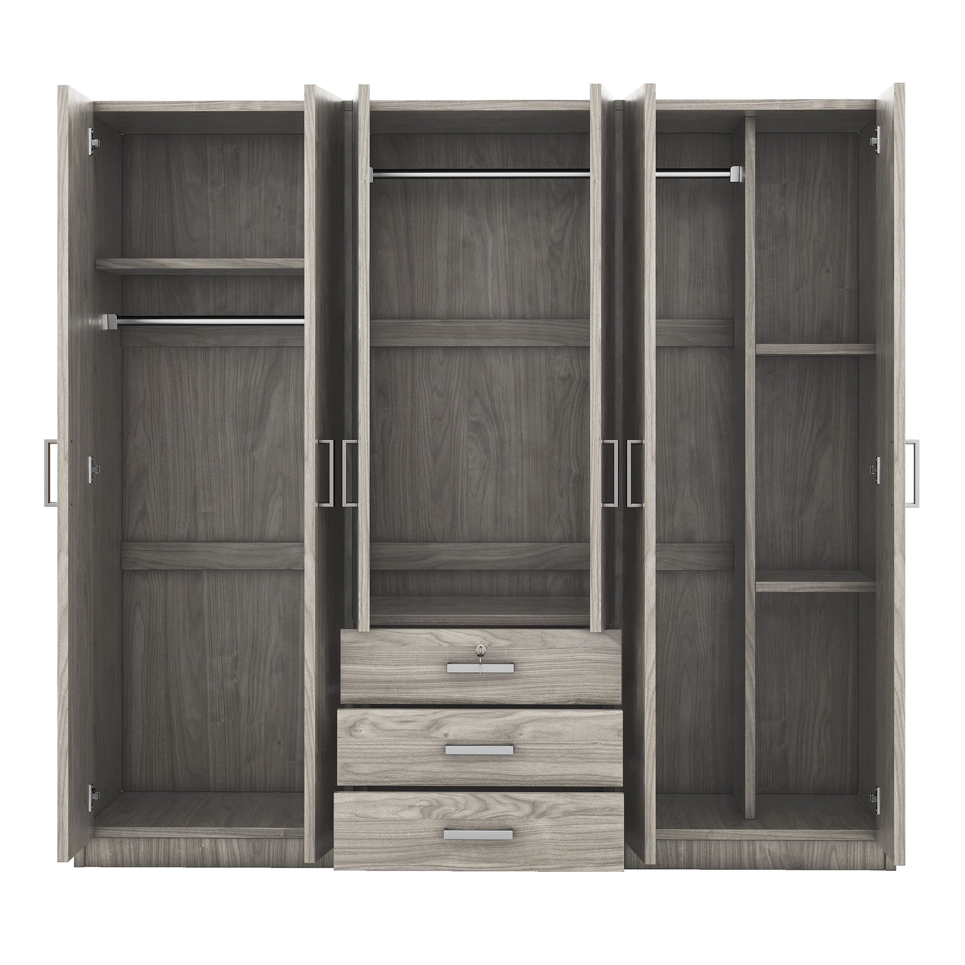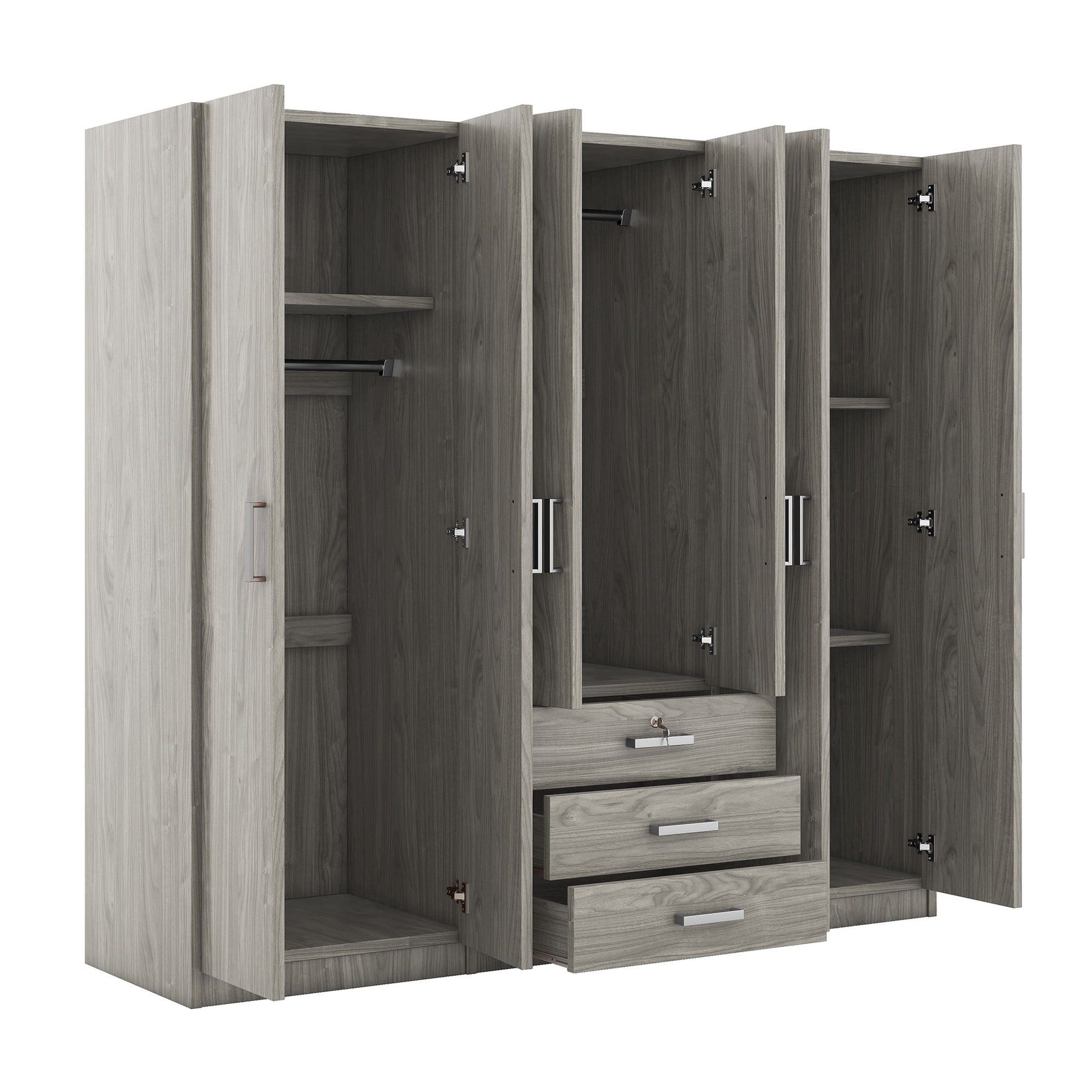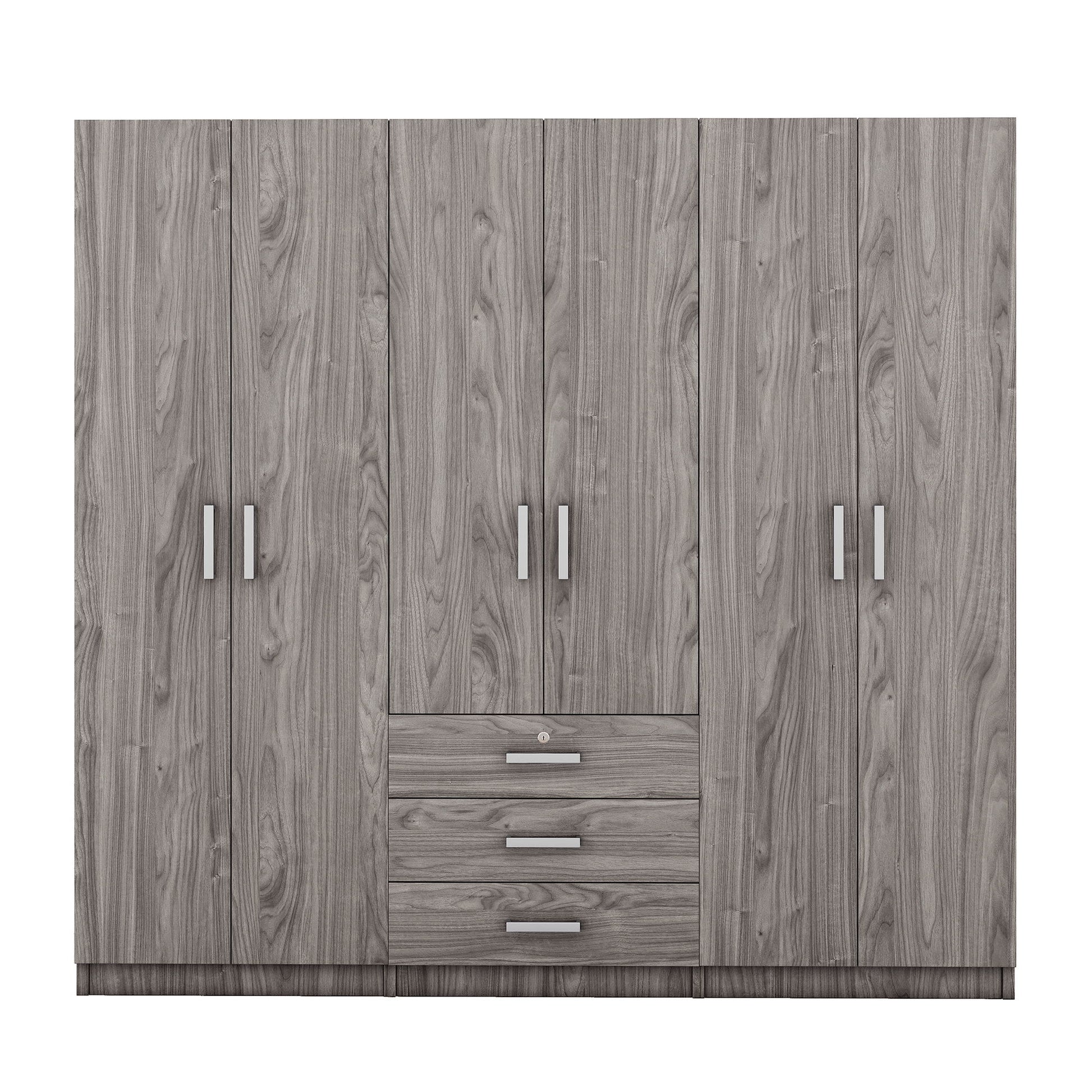 6 Doors Wardrobe Storage For Bedroom, With Big Drawers - Gray