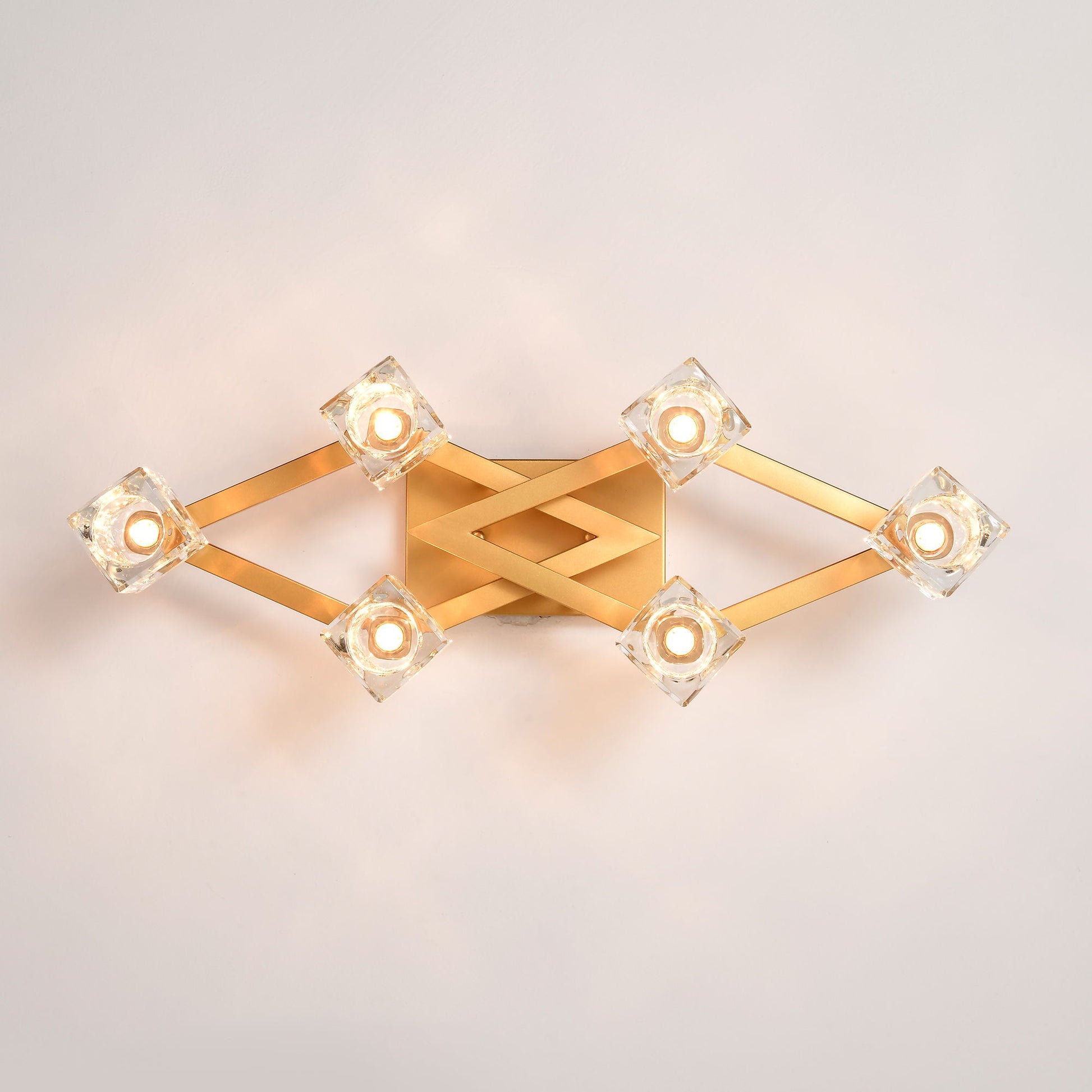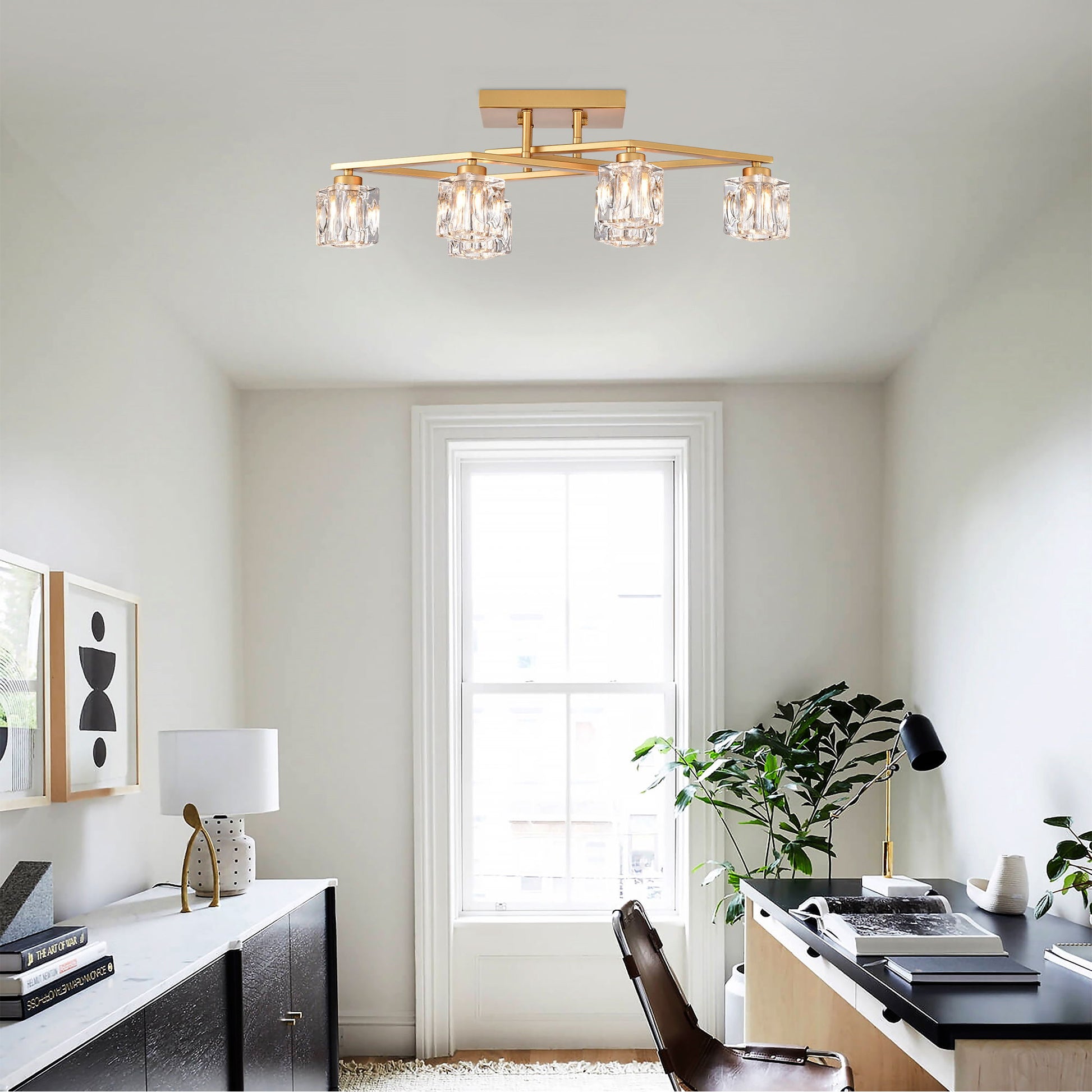 6 Light Crystal Ceiling Light For Dining Room, Modern Ceiling Lamp With Light Fixture For Entryway, Lobby, Kitchen, Bedroom, Living Room, Conference Room, (6*G9 Bulbs Included) - Gold