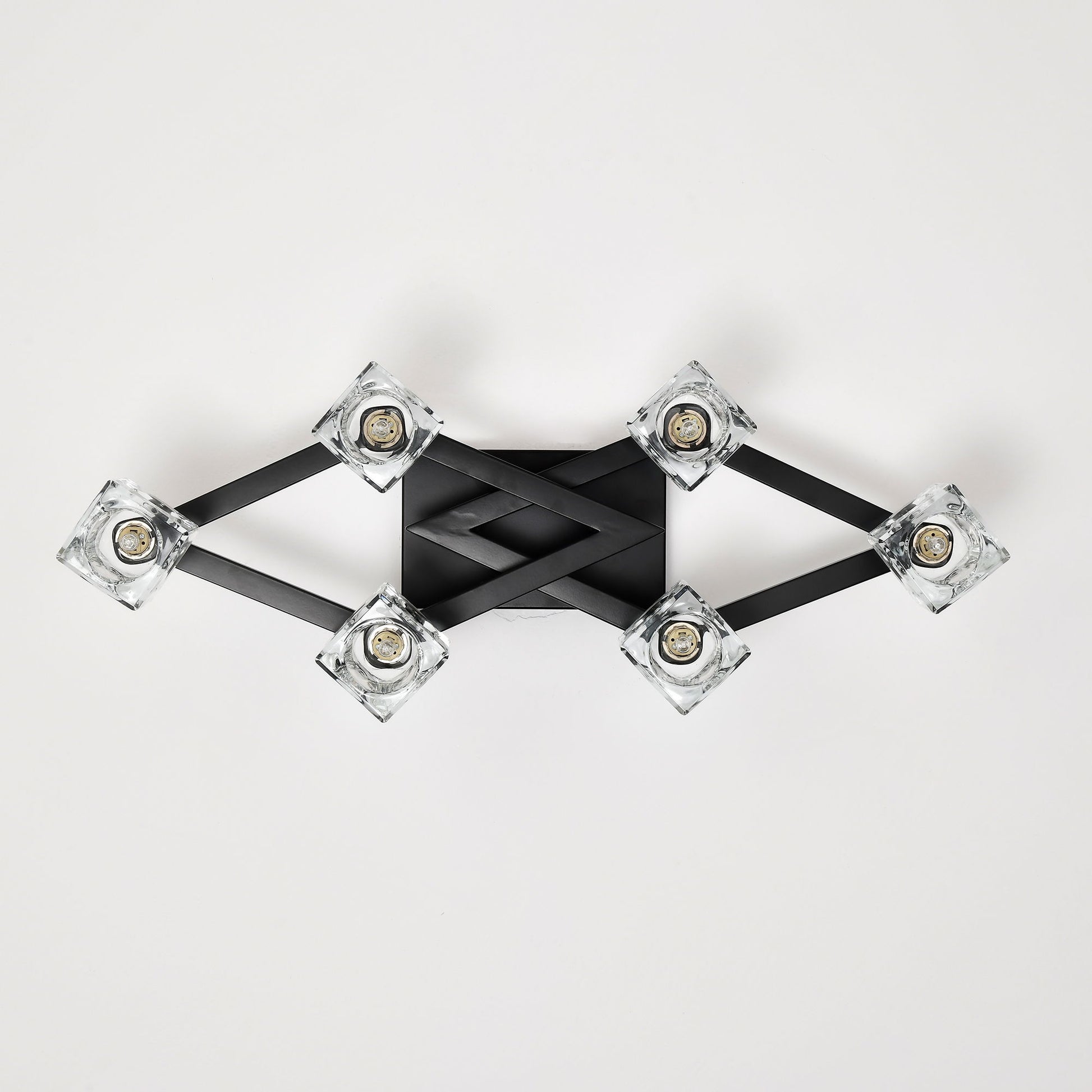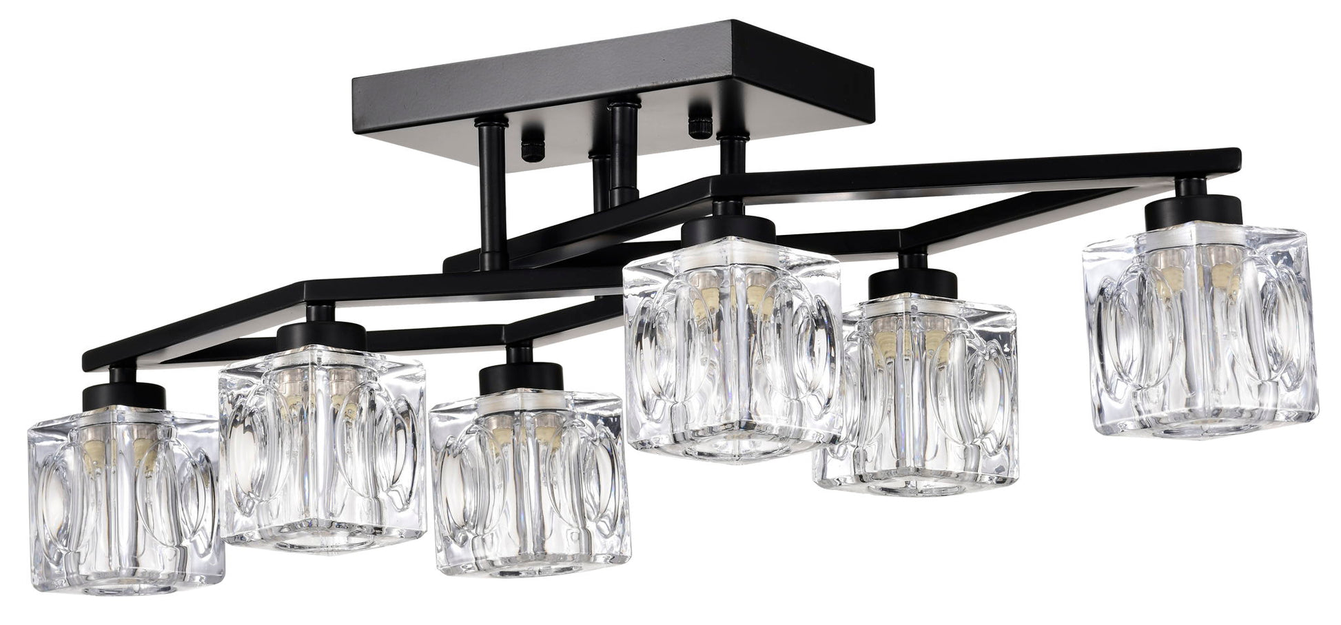 6 Light Crystal Ceiling Light For Dining Room, Modern Ceiling Lamp With Light Fixture For Farmhouse Entryway Living Room (6*G9 Bulbs Included) - Matte Black