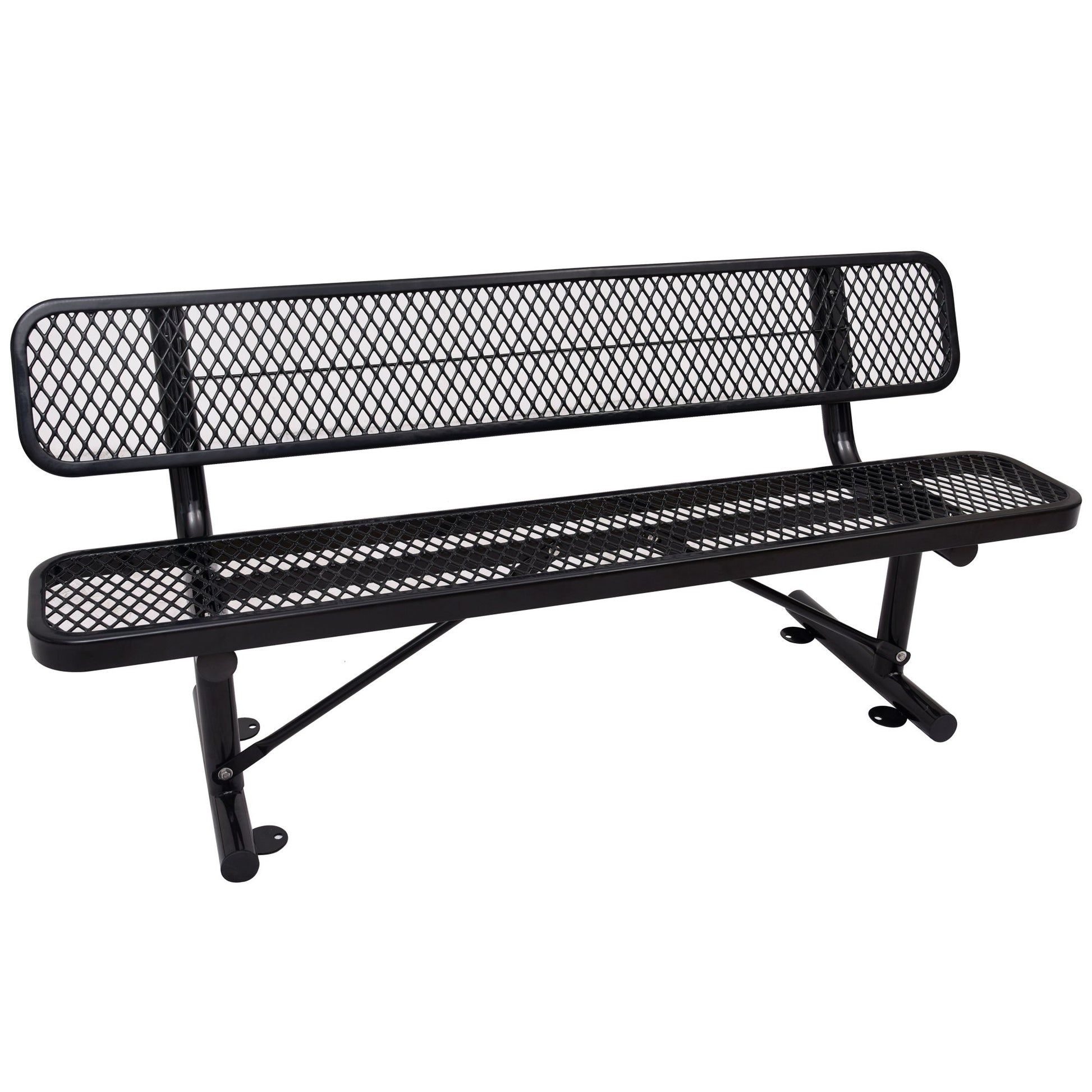 6' Outdoor Steel Bench With Backrest - Black