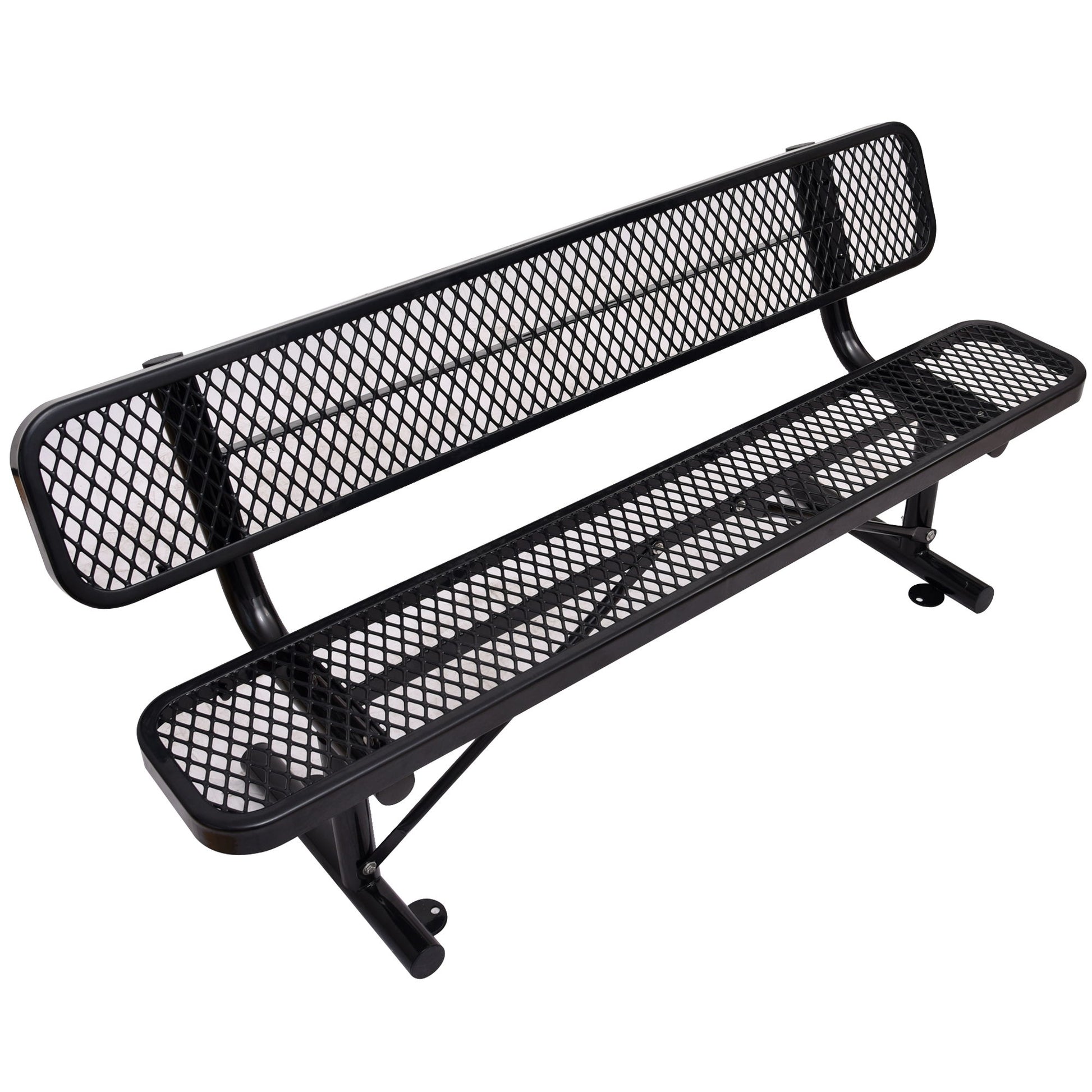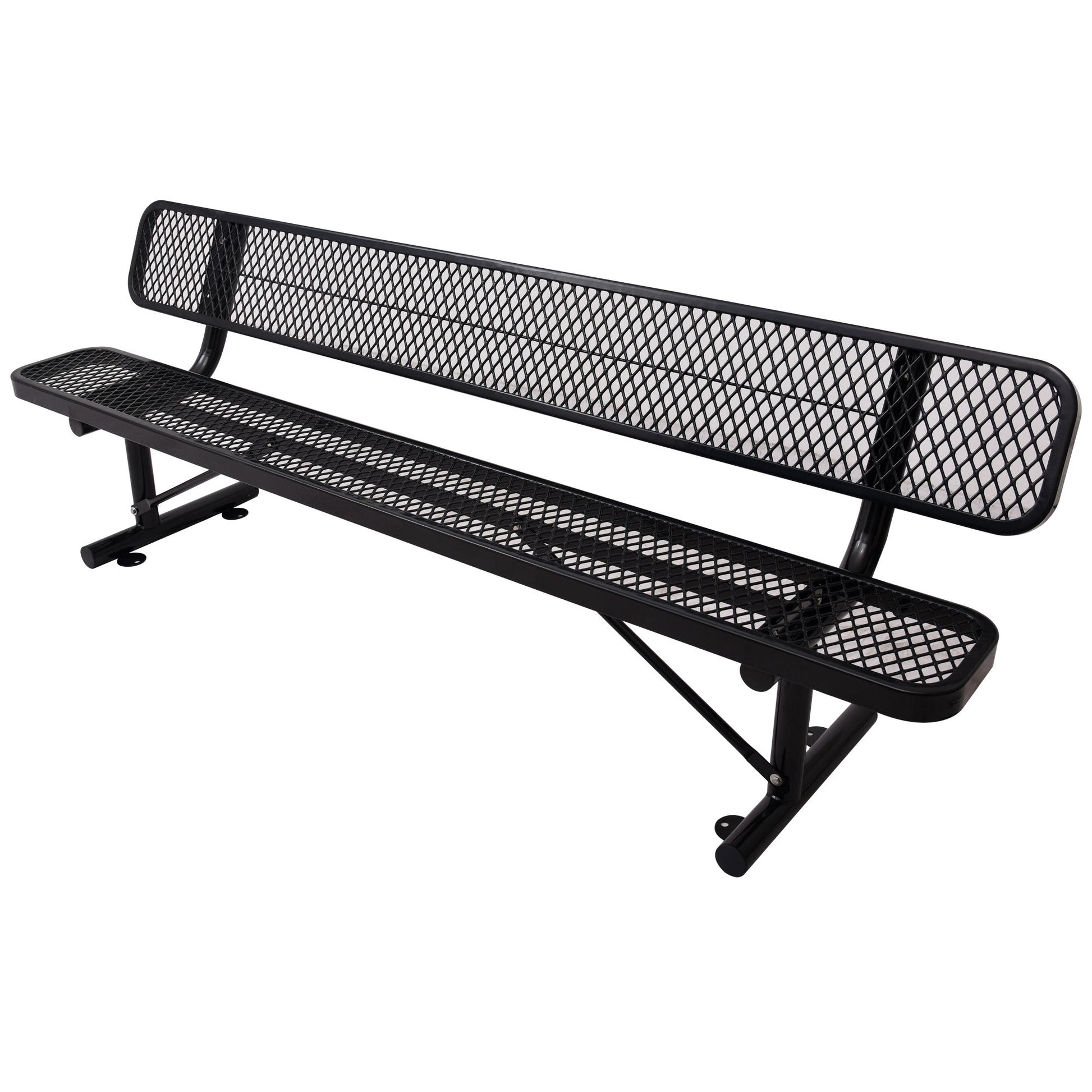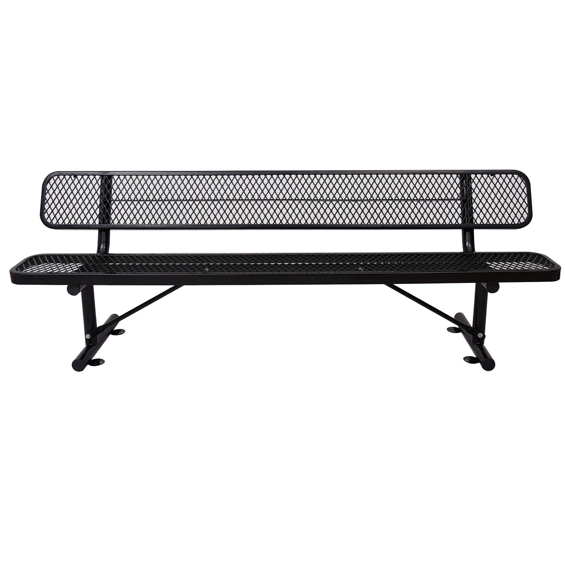8' Outdoor Steel Bench With Backrest - Black