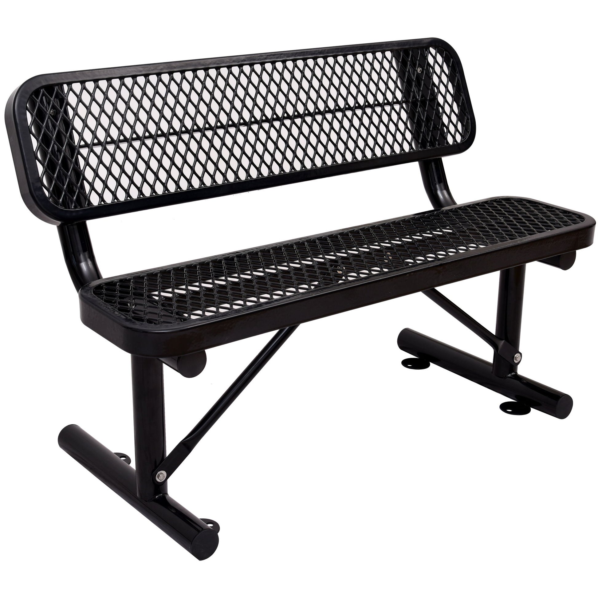 4' Outdoor Steel Bench With Backrest - Black