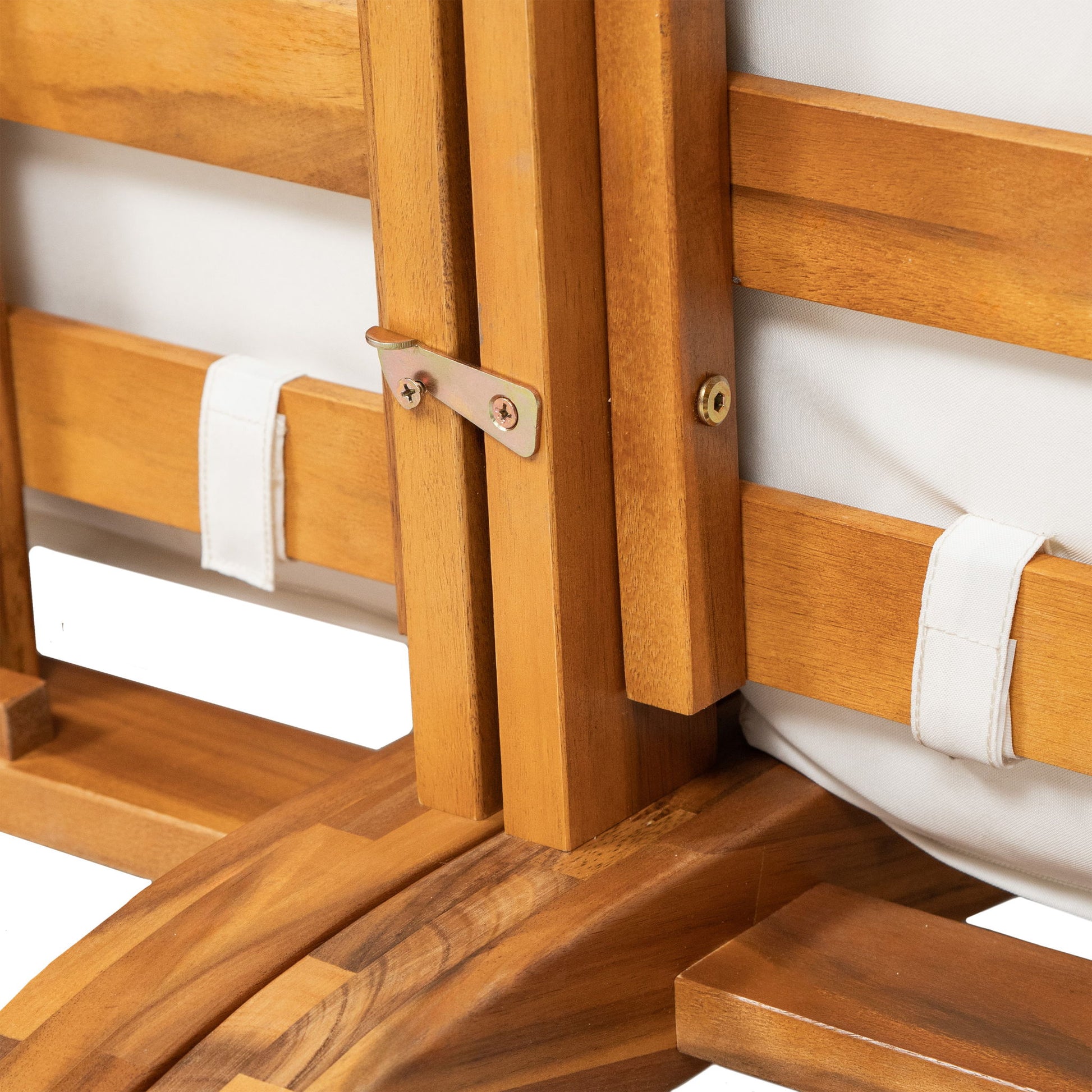 - [Durable Acacia Wood Construction & Heavy-Duty Support] Solid acacia wood resists warping from sun/rain; reinforced frames hold 350 lbs (chairs), 250 lbs (ottoman), 150 lbs (table). Removable cushion covers and natural wood grain ensure comfort.