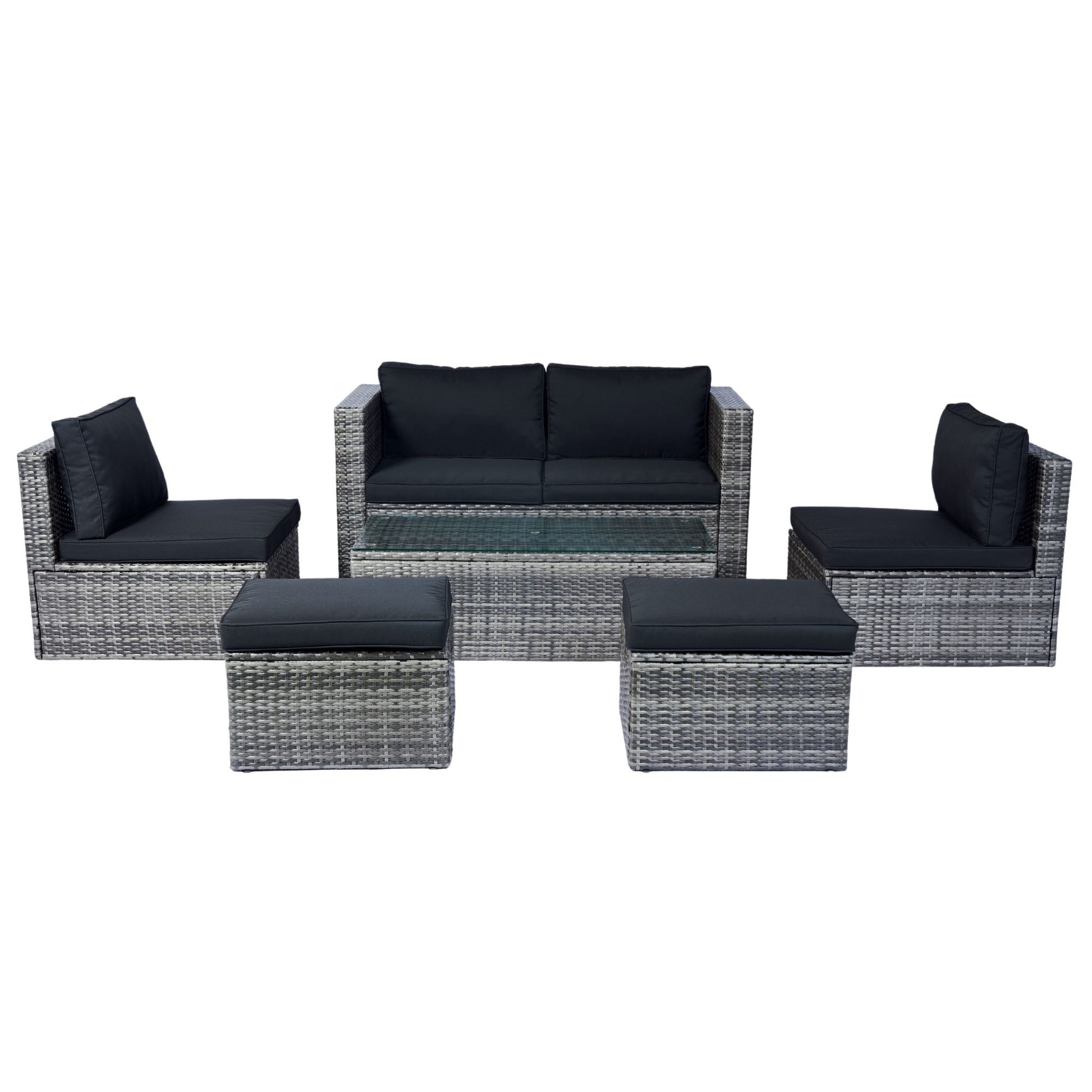 6 Piece Patio Wicker Sectional Set Patio Backyard Conversation Set Space Saving - Gray / Black