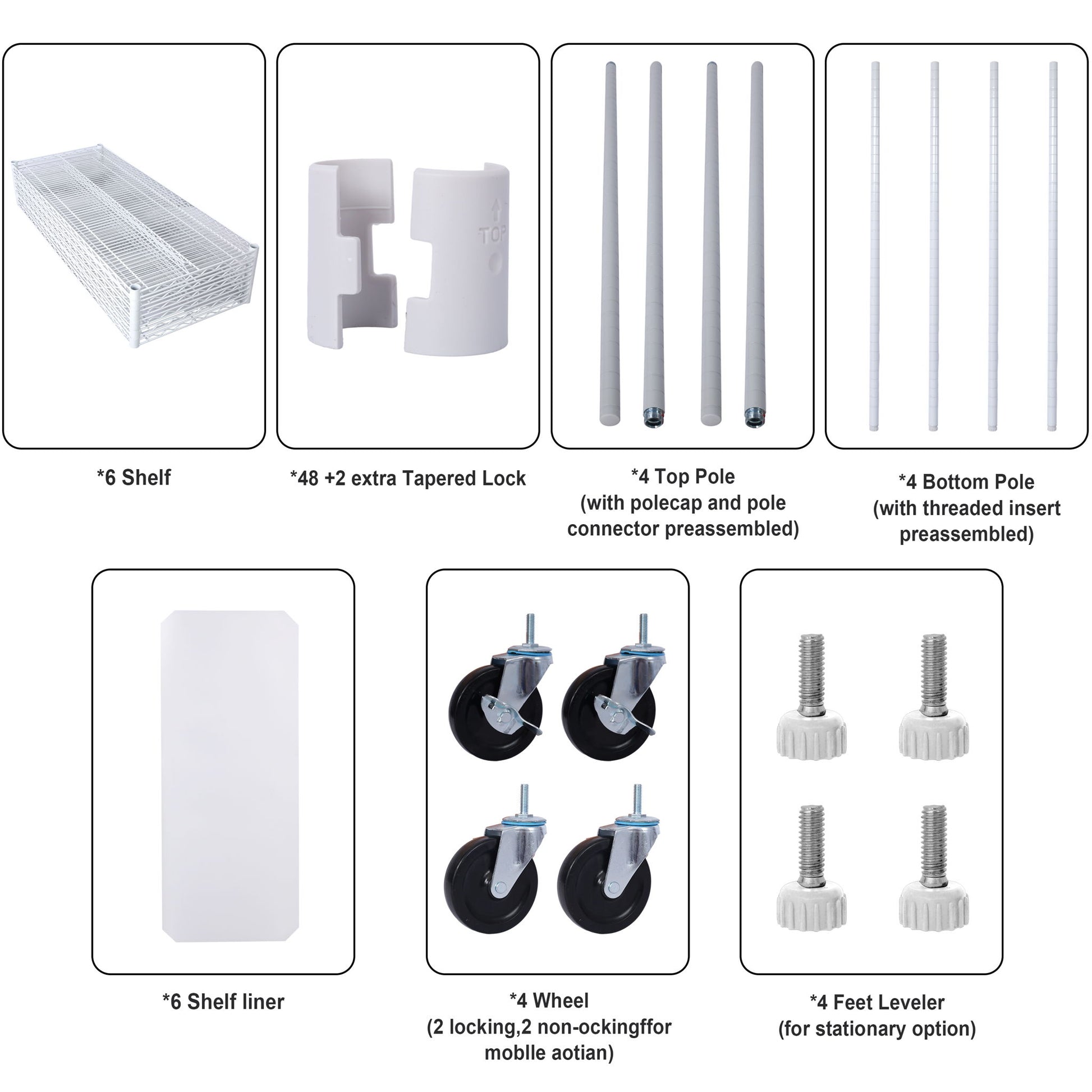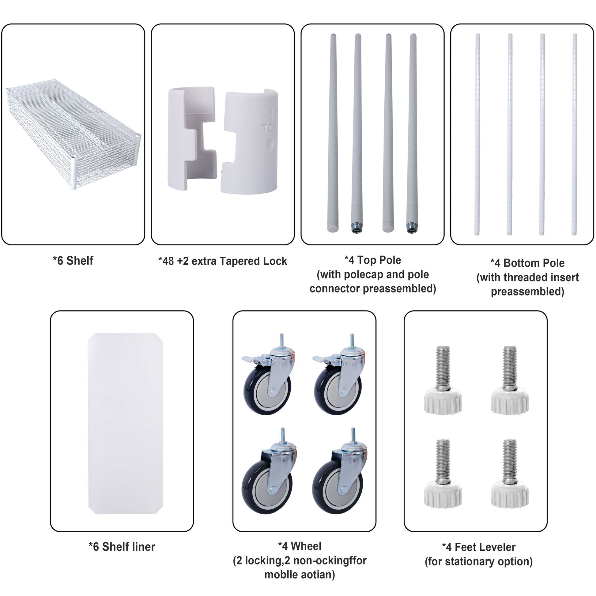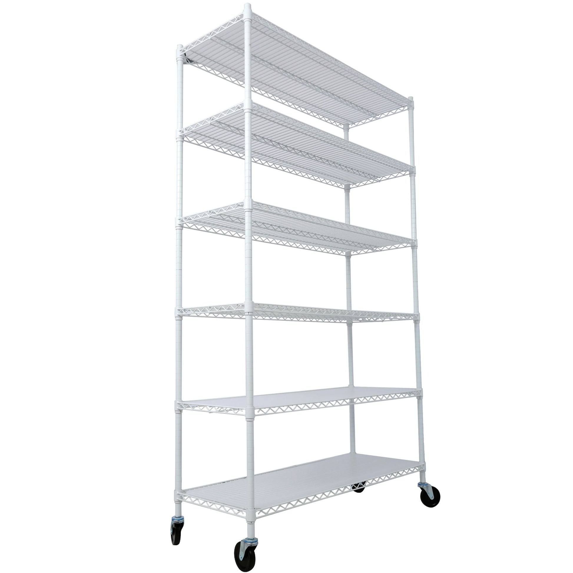 6 Tier 6000Lbs Capacity Nsf Metal Shelf Wire Shelving Unit, Heavy Duty Adjustable Storage Rack With Wheels & Shelf Liners For Commercial Grade Utility Steel Storage Rack - White