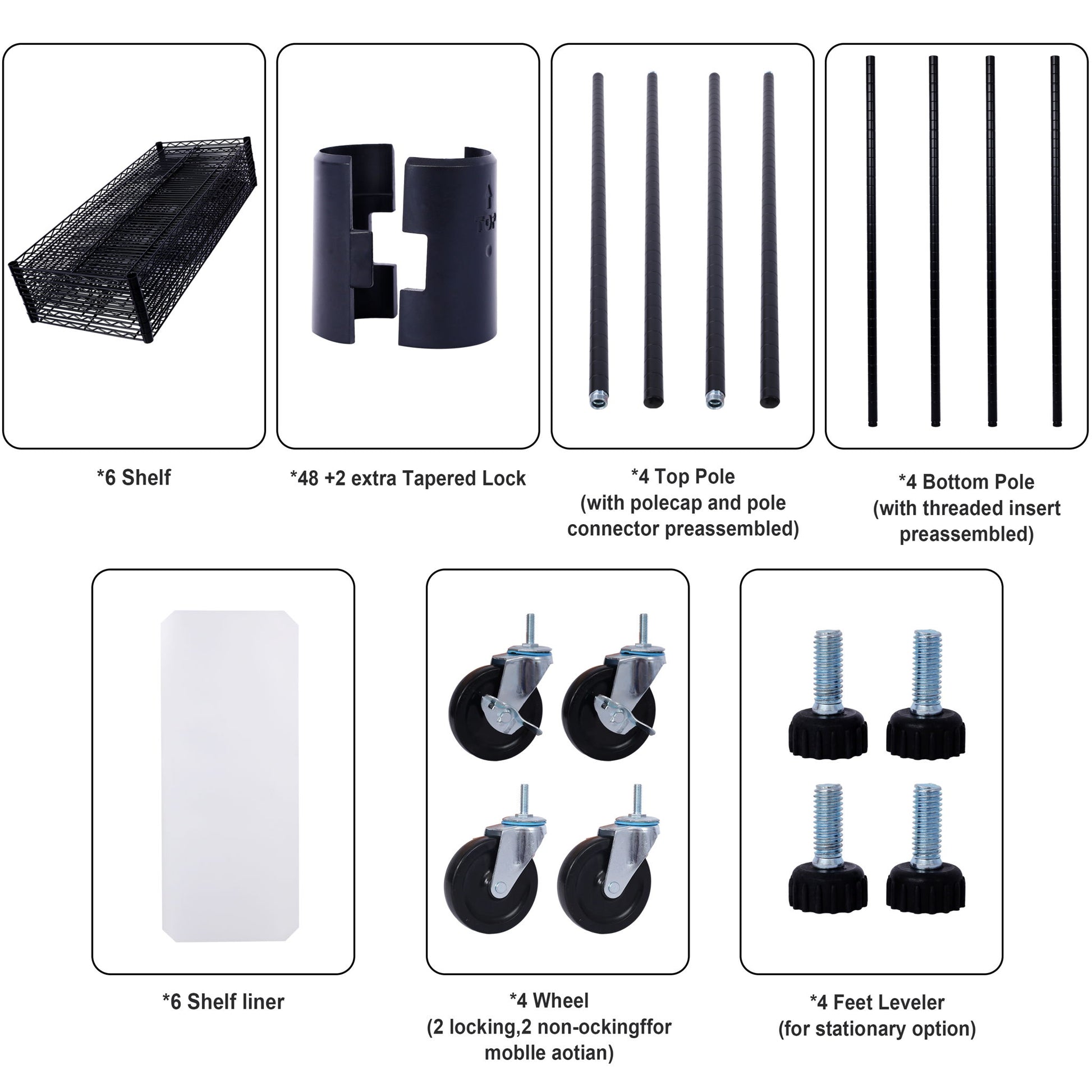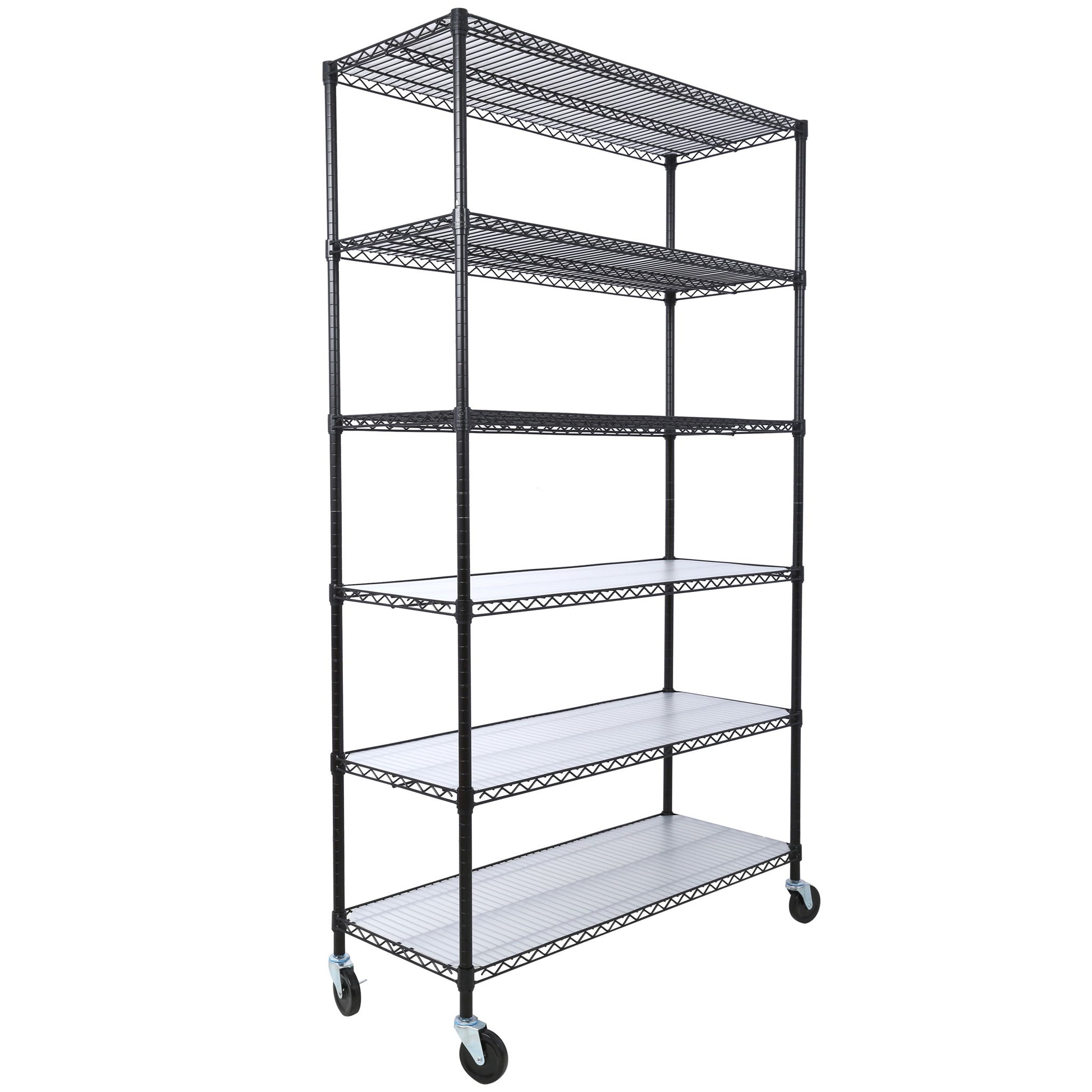 6 Tier 6000Lbs Capacity Nsf Metal Shelf Wire Shelving Unit, Heavy Duty Adjustable Storage Rack With Wheels & Shelf Liners For Commercial Grade Utility Steel Storage Rack - Black