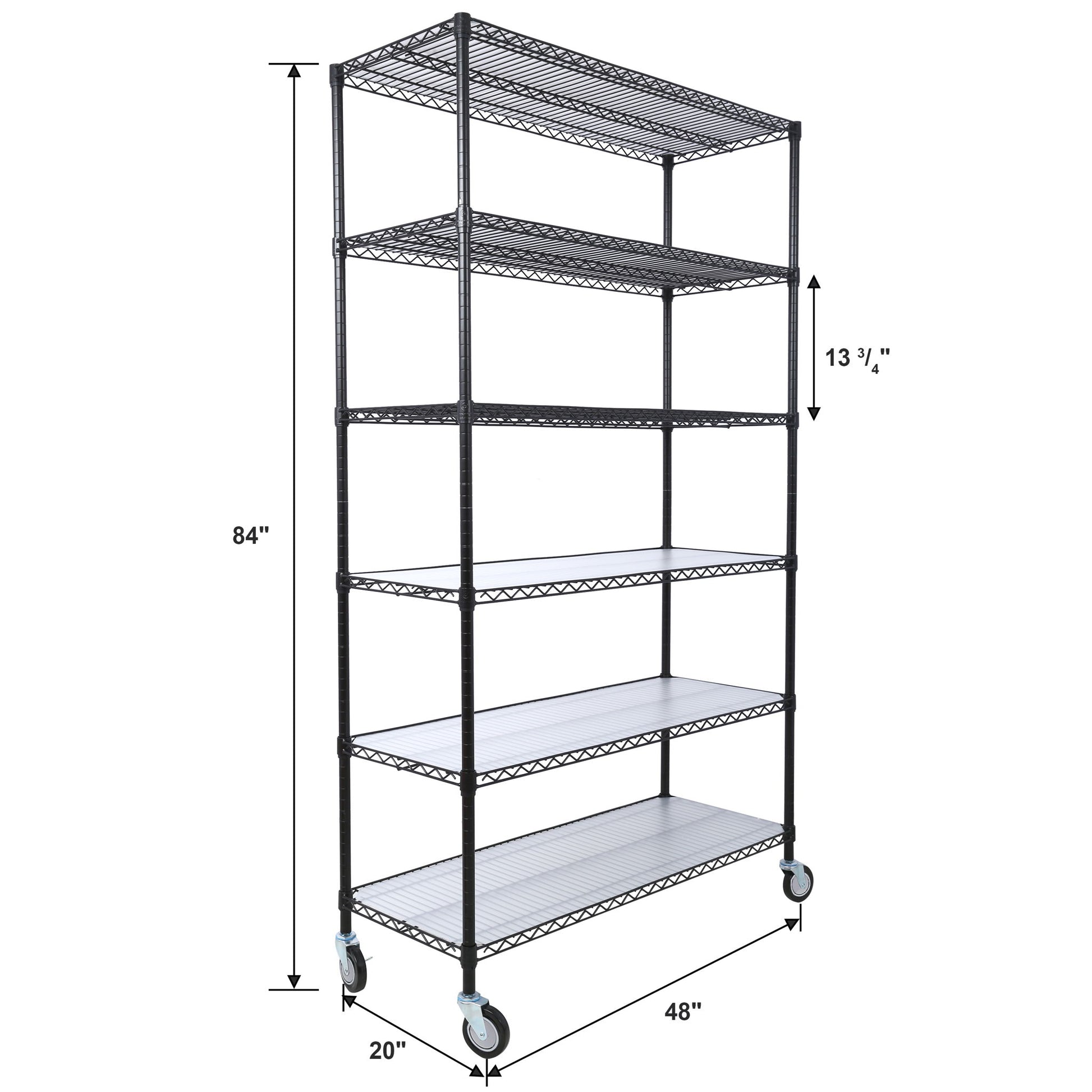84" x 48" x 20" 6 Tier 6000Lbs Capacity Nsf Metal Shelf Wire Shelving Unit, Heavy Duty Adjustable Storage Rack With Wheels & Shelf Liners For Commercial Grade Utility Steel Storage Rack - Black