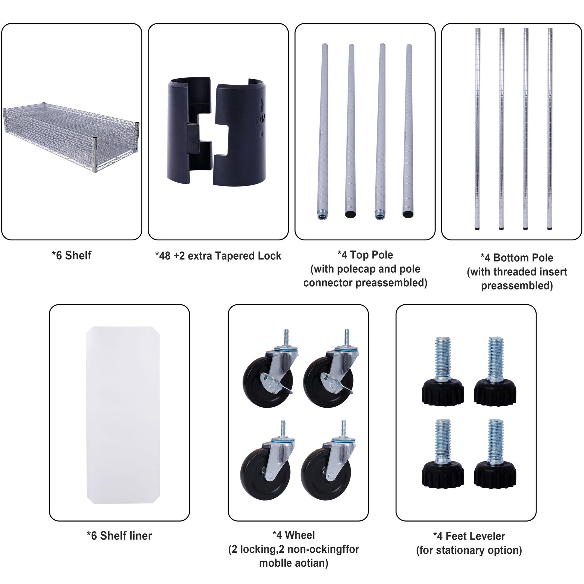 6 Tier 6000Lbs Capacity Nsf Metal Shelf Wire Shelving Unit, Heavy Duty Adjustable Storage Rack With Wheels & Shelf Liners For Commercial Grade Utility Steel Storage Rack - Chrome