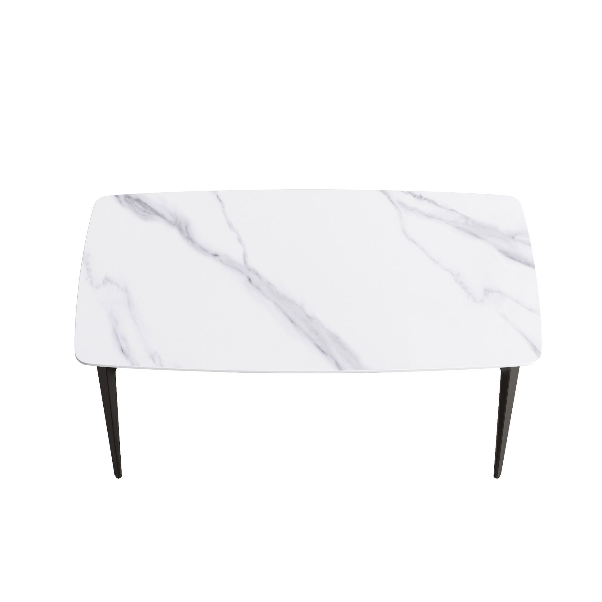 63" Modern Artificial Stone White Curved Black Metal Leg Dining Table, 6 People - White