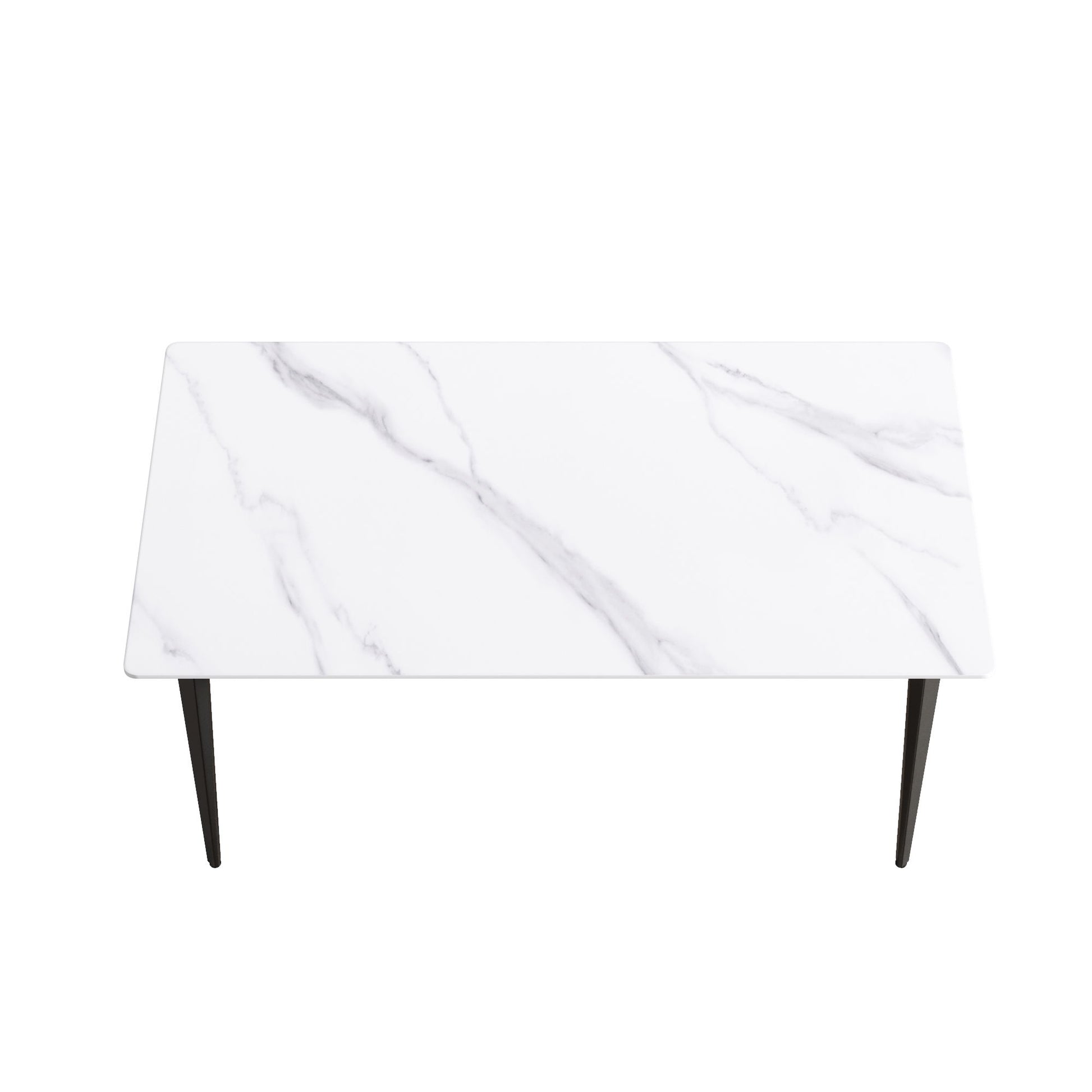 63" Modern Artificial Stone White Straight Edge Black Metal Leg Dining Table, 6 People - White / Black