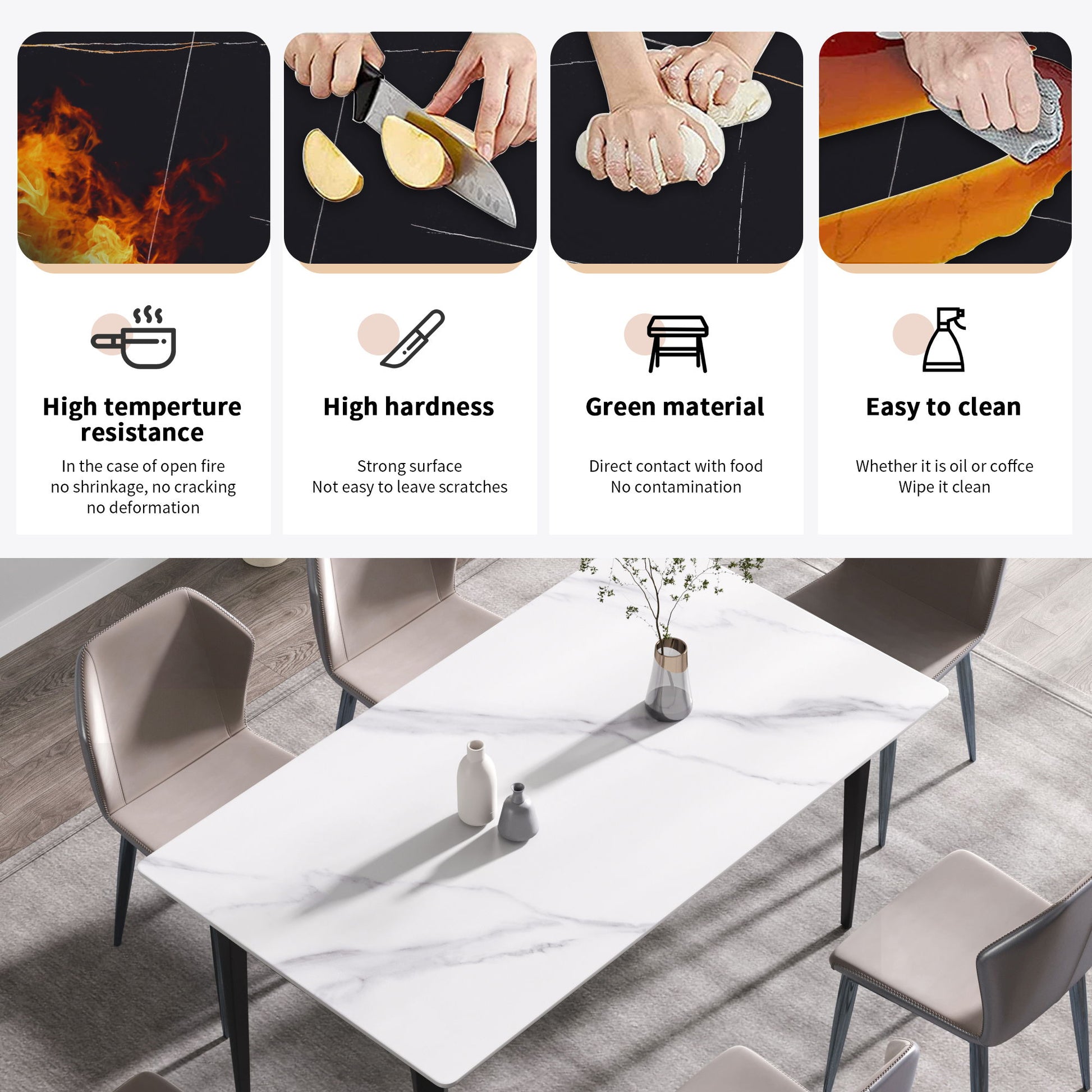 - Durable Surface: Crafted from sintered stone, the 12mm thick tabletop resists burns, scratches, and stains.