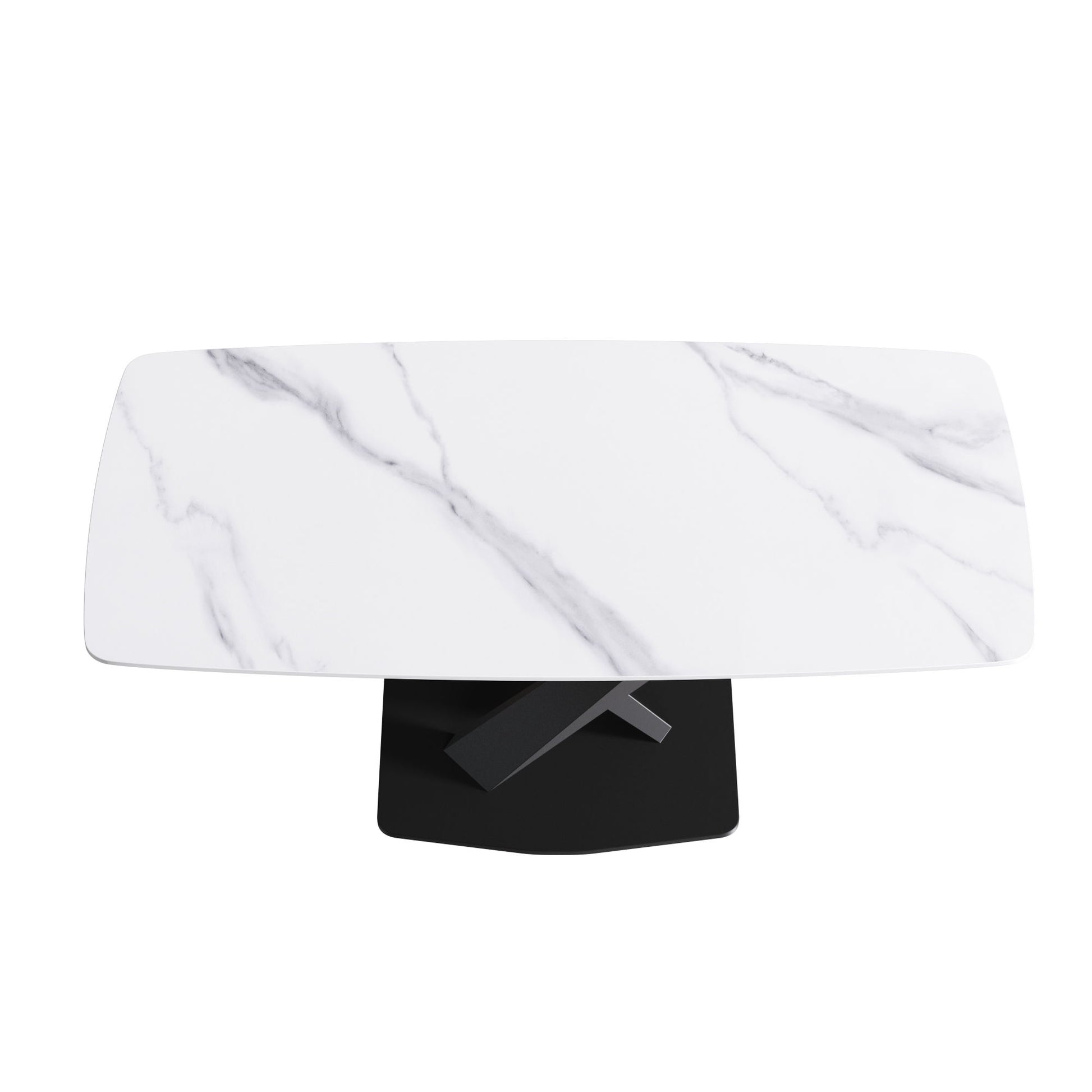70.87" Modern Artificial Stone White Curved Black Metal Leg Dining Table, Can Accommodate 6-8 People - White / Black