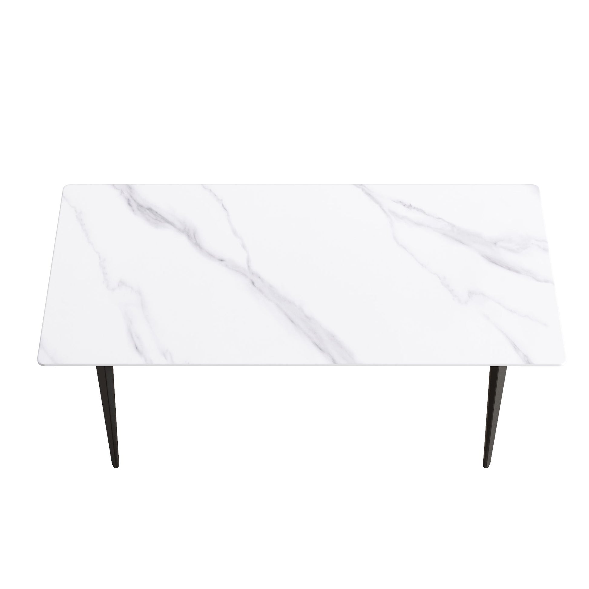 70.87" Modern Artificial Stone White Straight Edge Black Metal Leg Dining Table, Can Accommodate 6-8 People - White / Black