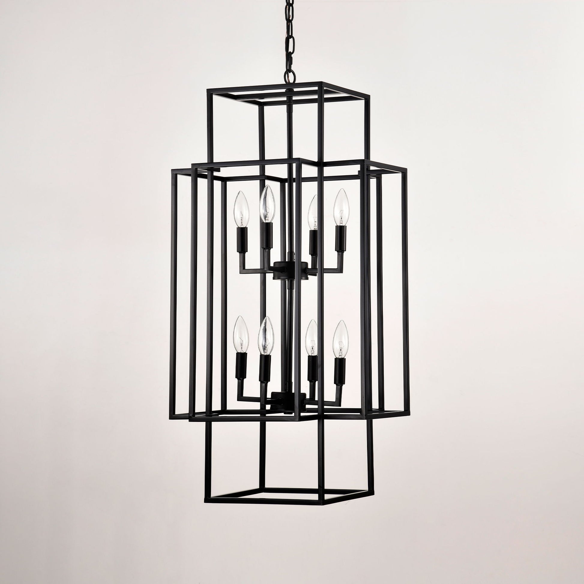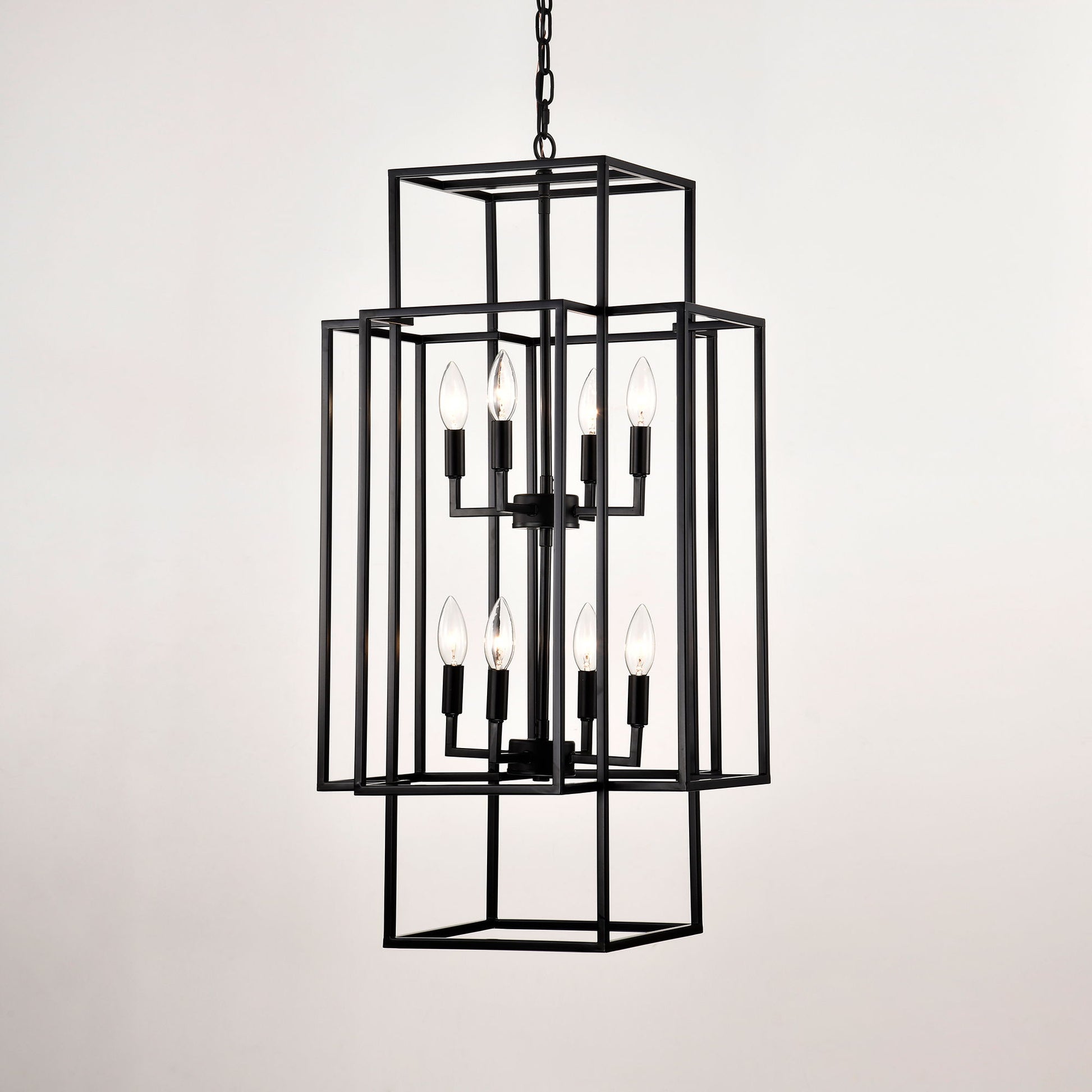 8 Light Metal Lantern Tiered Pendant Hanging Light Fixtures, Industrial Farmhouse Adjustable Height Chandeliers For Dining Room Hallway Foyer Entryway (E12 Bulbs Not Included) - Matte Black
