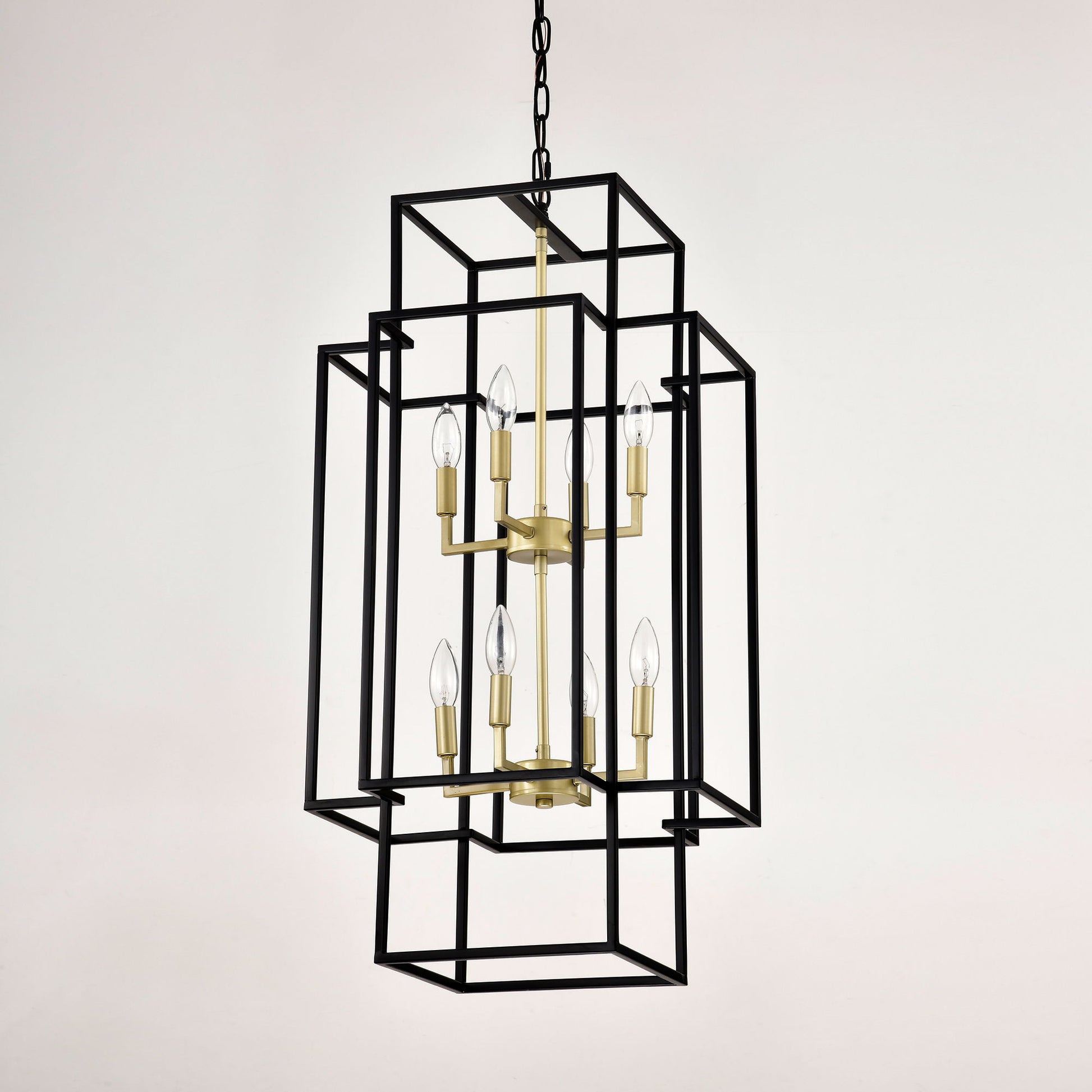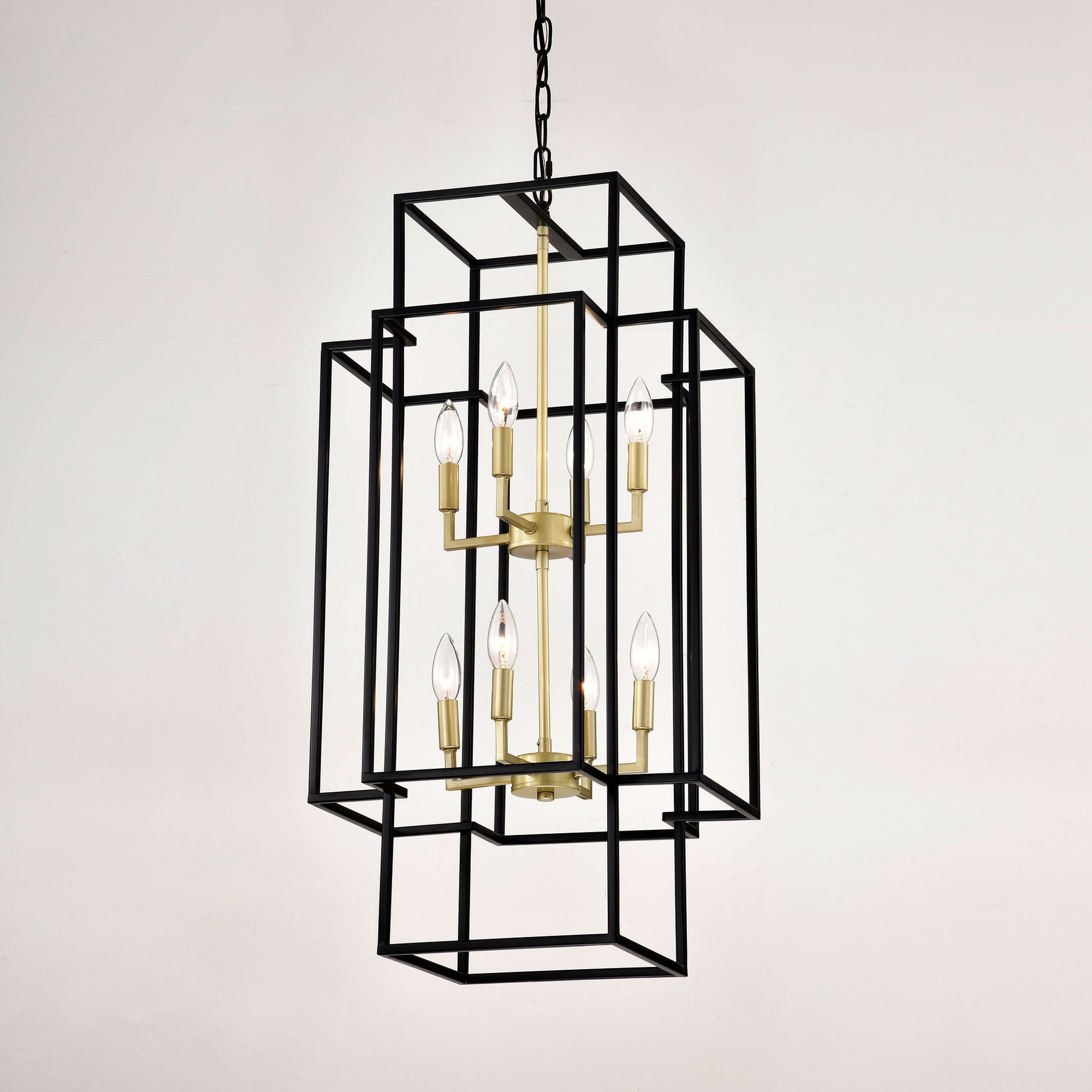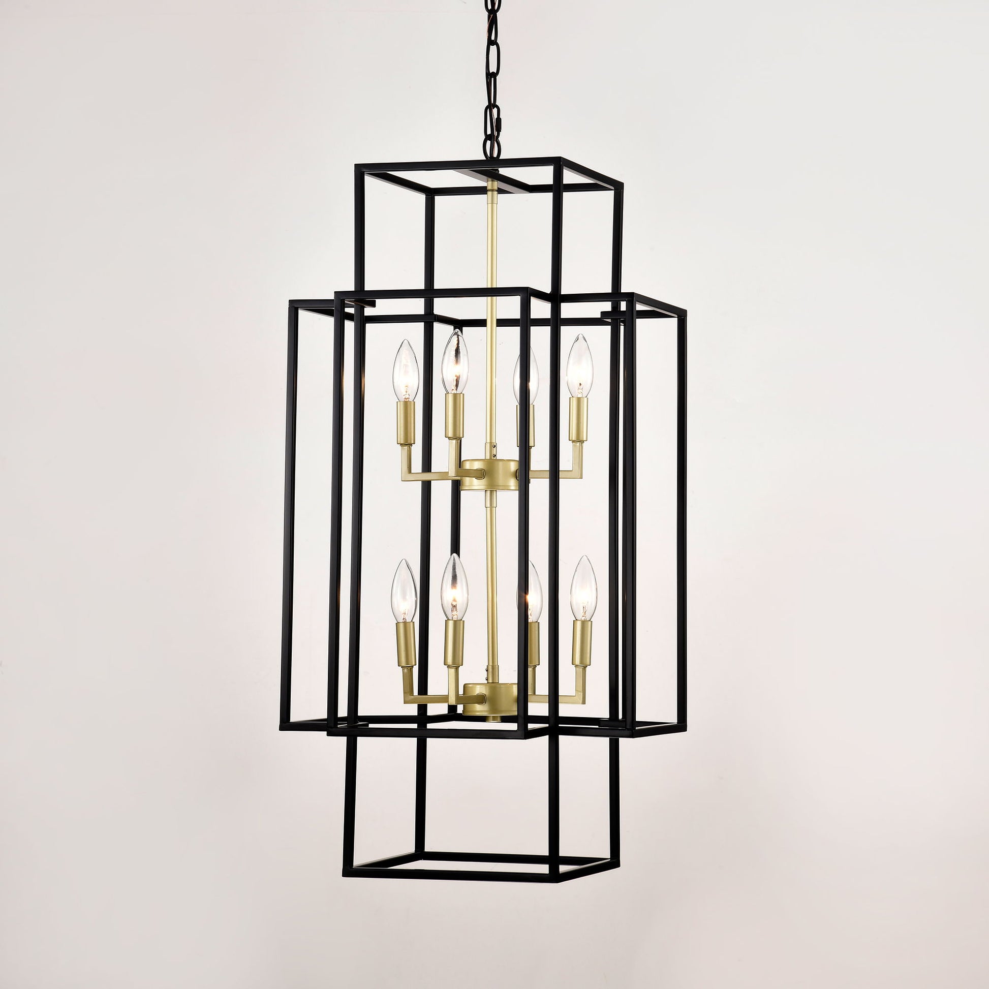 8 Light Metal Lantern Tiered Pendant Hanging Light Fixtures, Industrial Farmhouse Adjustable Height Chandeliers For Dining Room Hallway Foyer Entryway (E12 Bulbs Not Included) - Matte Black / Gold