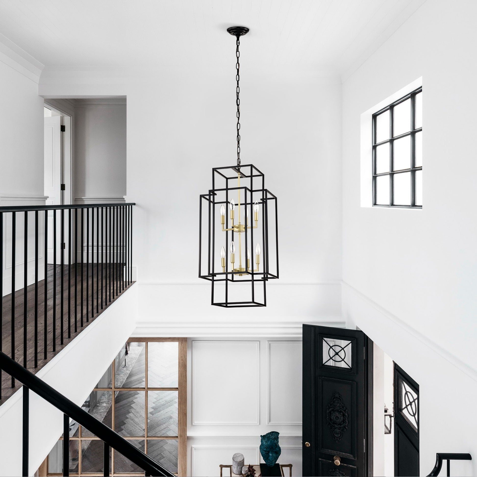 8 Light Lantern Chandelier Lighting, Entryway Chandeliers For High Ceilings, Chandeliers For Dining Room, Foyer, Entry, Staircase, Hallway, Height Adjustable (E12 Bulbs Not Included)