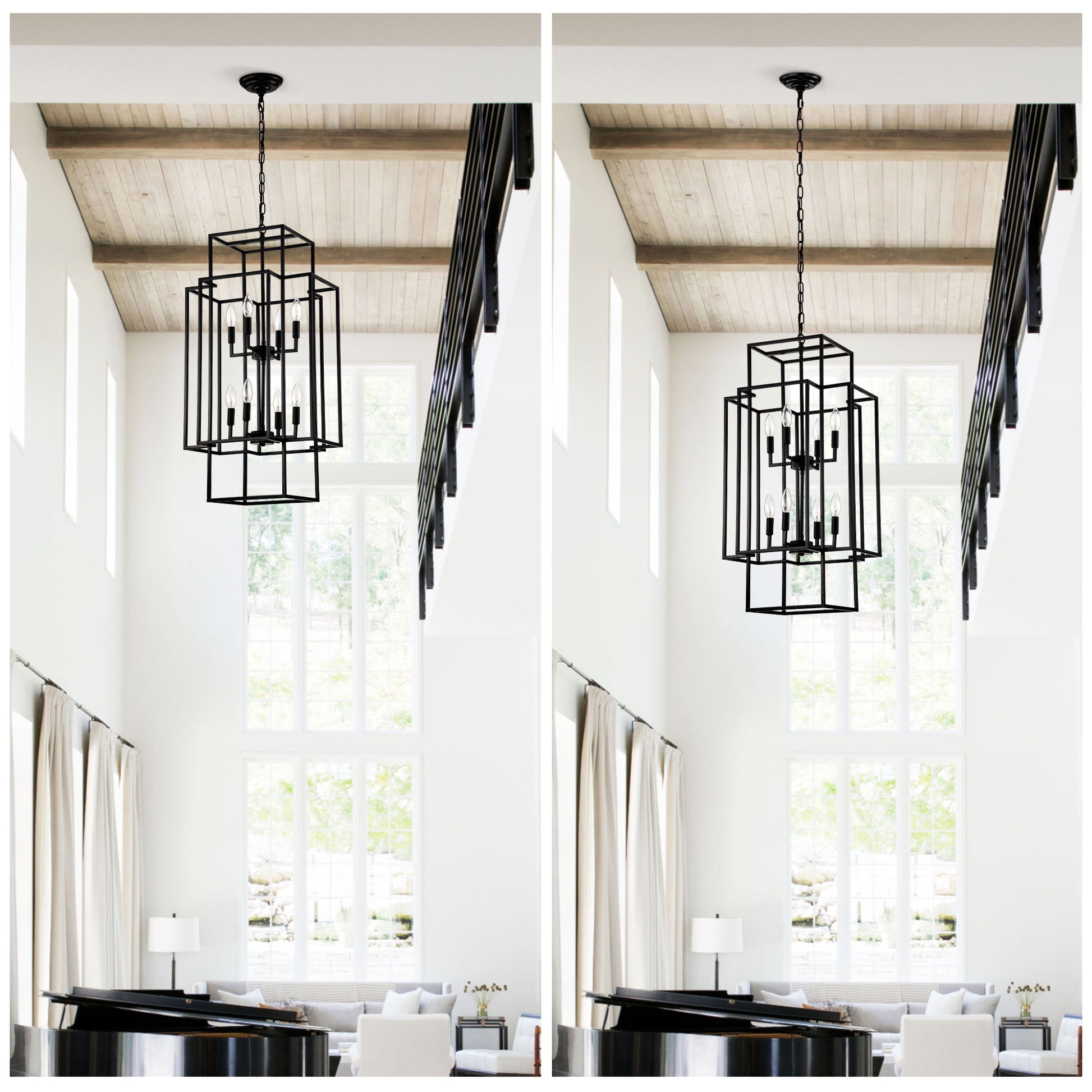 - Unique Design: The chandelier features a lantern shape, combining rustic and modern elements to become a focal point in any room, including dining rooms, kitchens, living rooms, and offices.