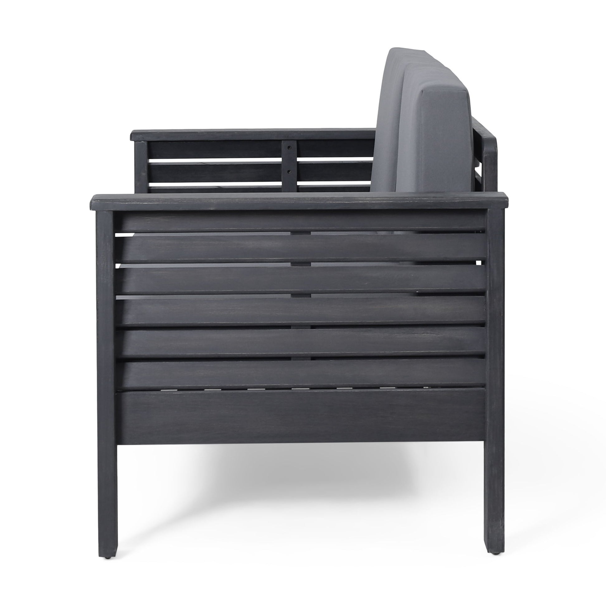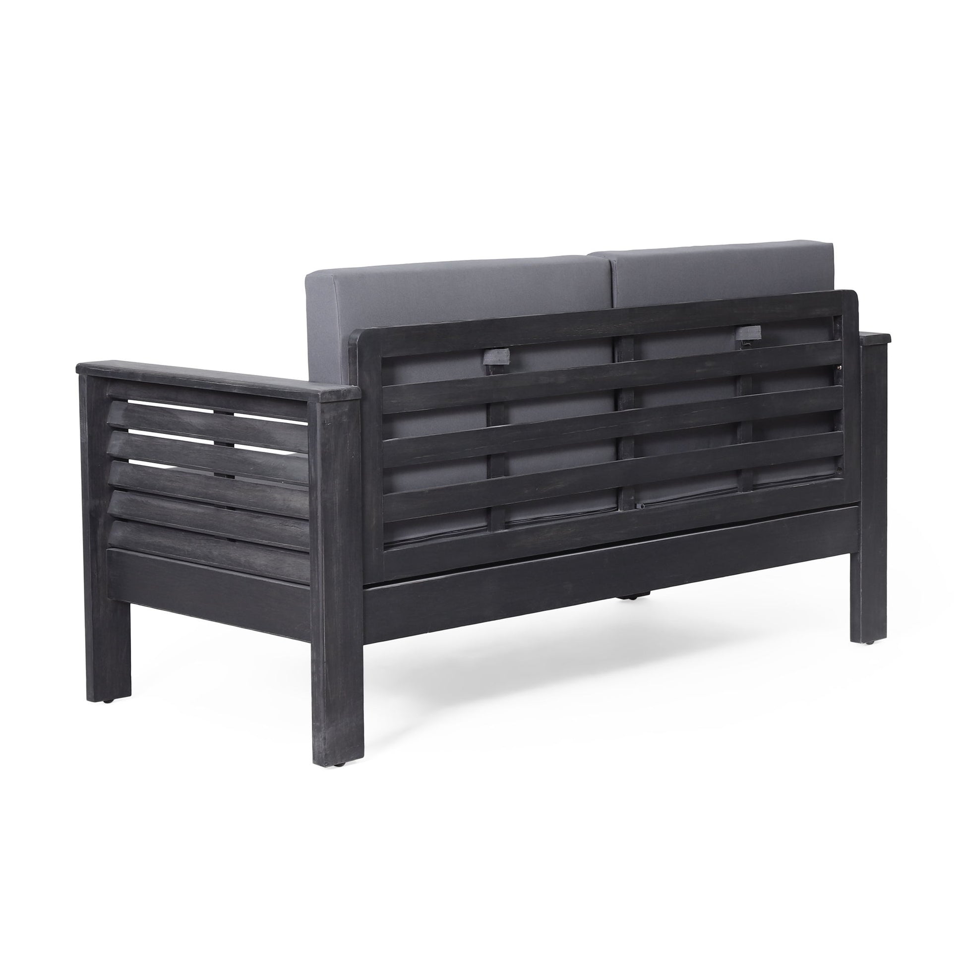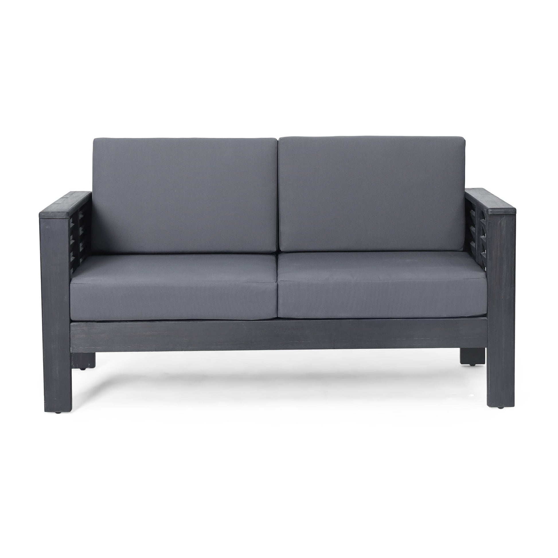 Acacia Wood Outdoor Loveseat And Coffee Table Set With Cushions - Dark Gray