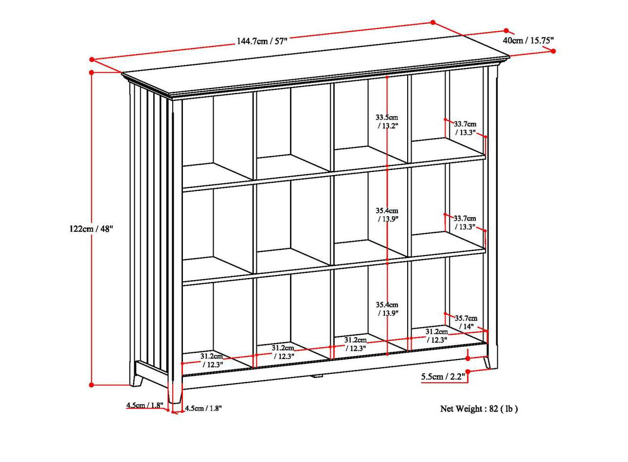 - Features twelve large storage cubbies for storage of objects of all shapes and sizes