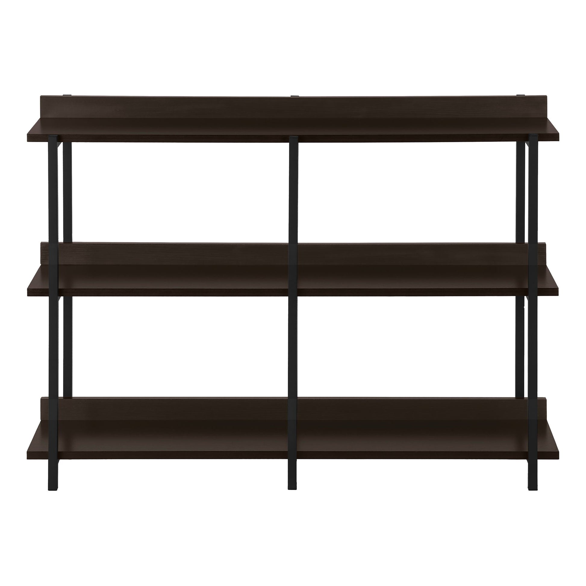 - 3-Tier Design: This console table features a long, rectangular tabletop and two additional storage shelves, all designed with finish to provide a sleek and symmetrical display piece.