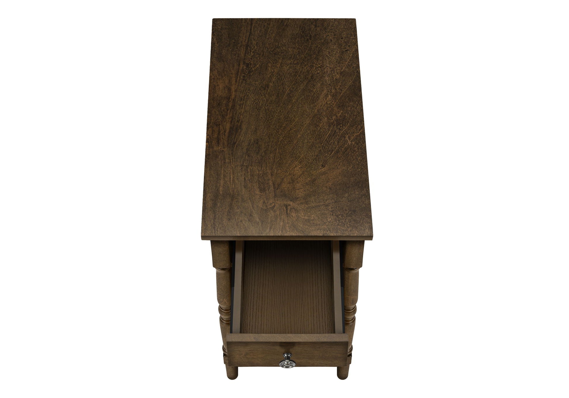 - Functional Storage: Equipped with a storage drawer on metal glides, accented by a metal knob, this table offers a convenient place to tuck away small essentials. The bottom shelf provides additional organization space.