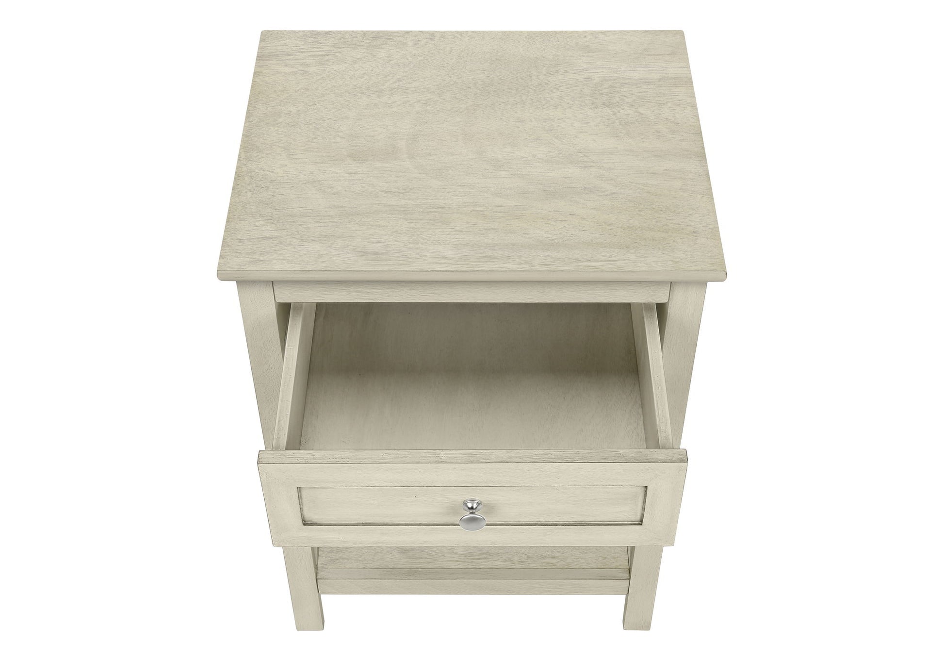 - Ample Storage: It includes a paneled drawer with metal glides and a metal knob for storing small essentials, plus a spacious bottom shelf for additional organization.
