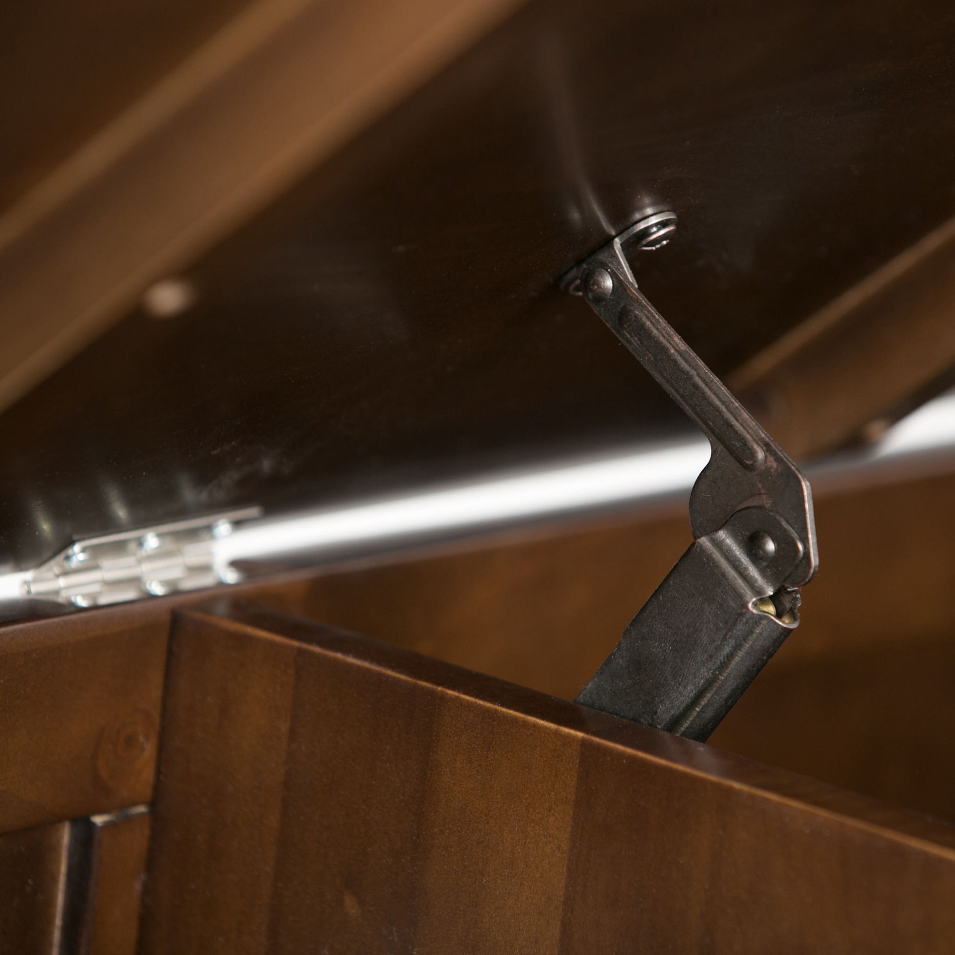 - Lift up bench lid opens using safety hinges to expose 2 large internal storage compartments