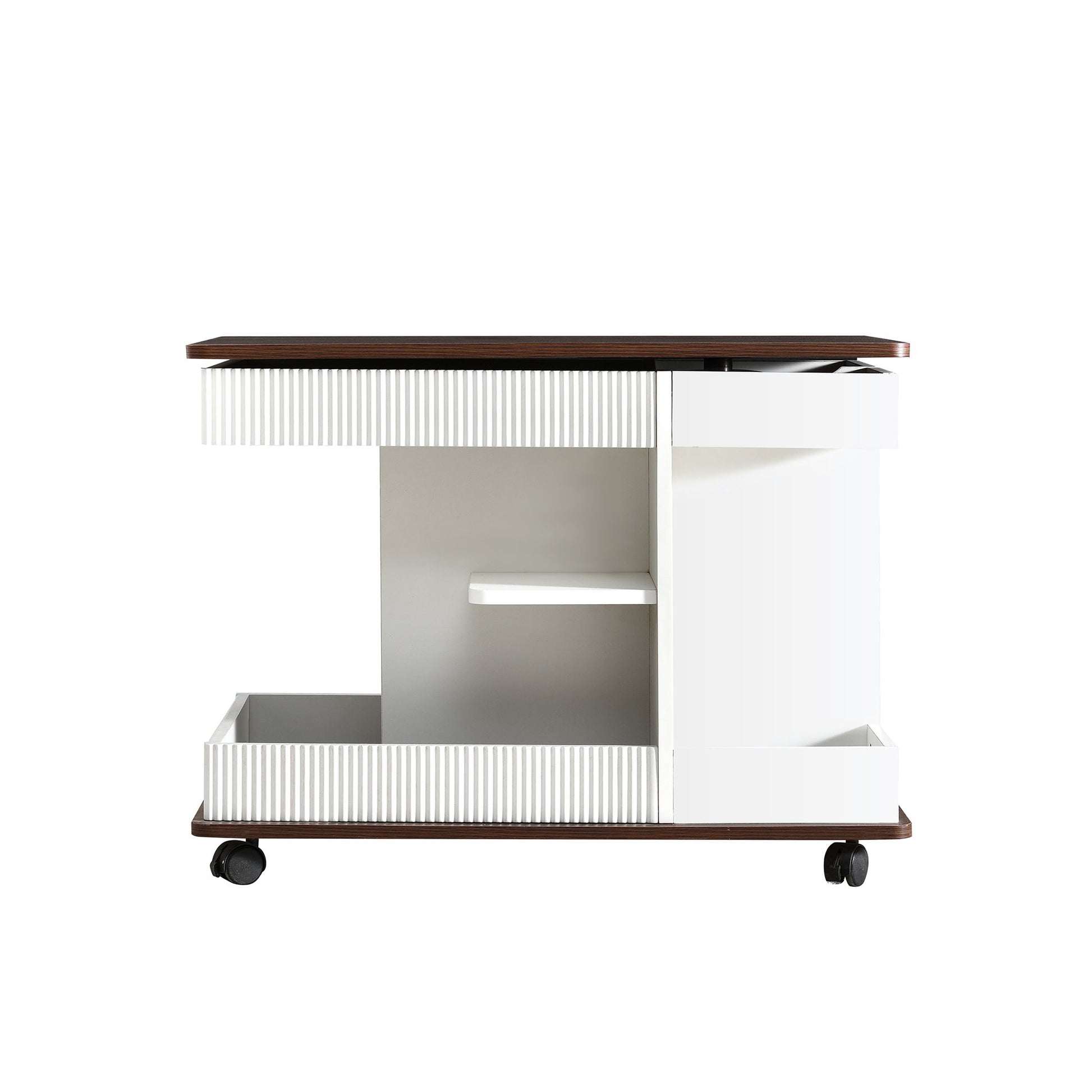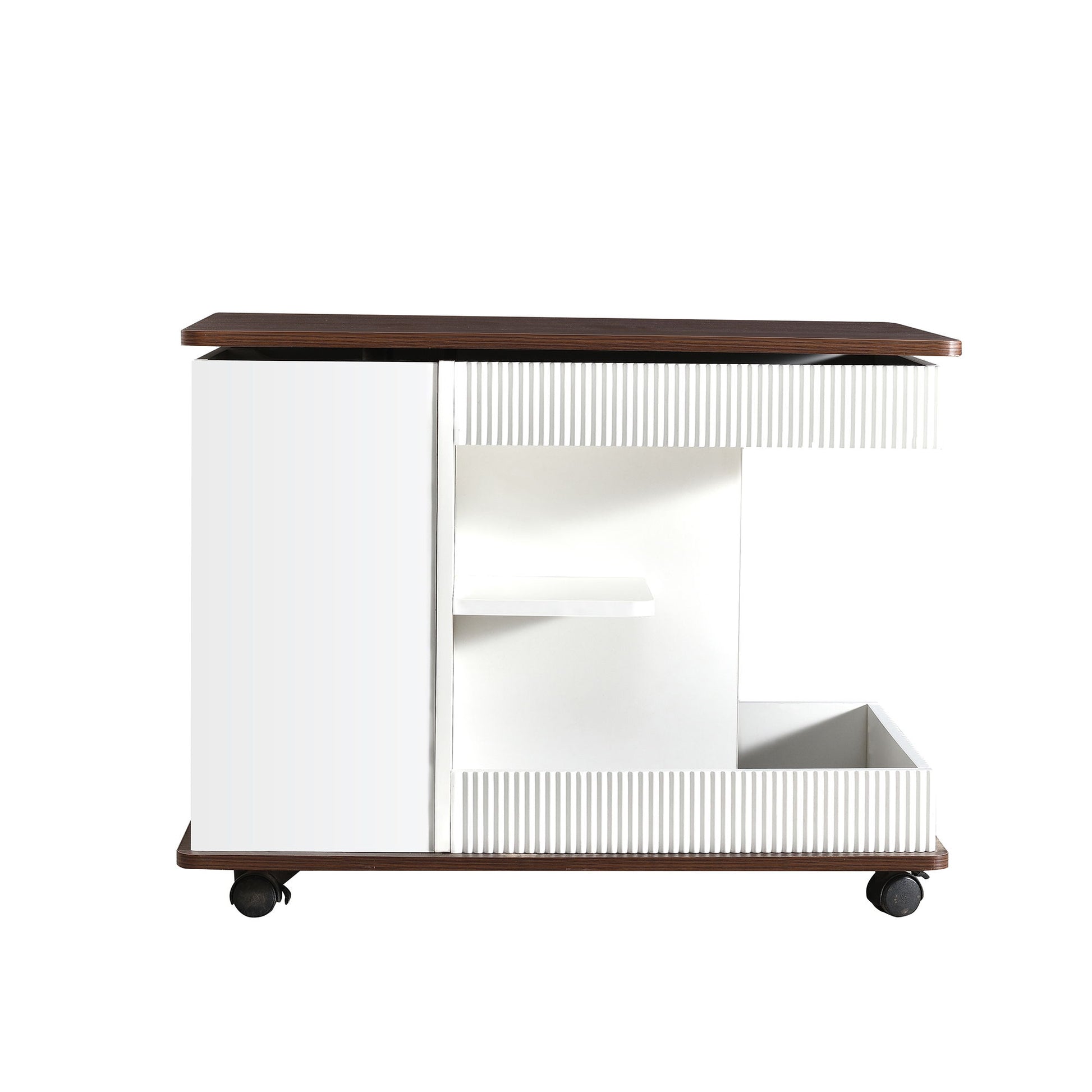 Adjustable End Table With Wheels, Modern Multifunctional Sofa Side Table With Lift Top, 360°Rotating Top And Storage Space For Living Room, Small Space - Brown / White