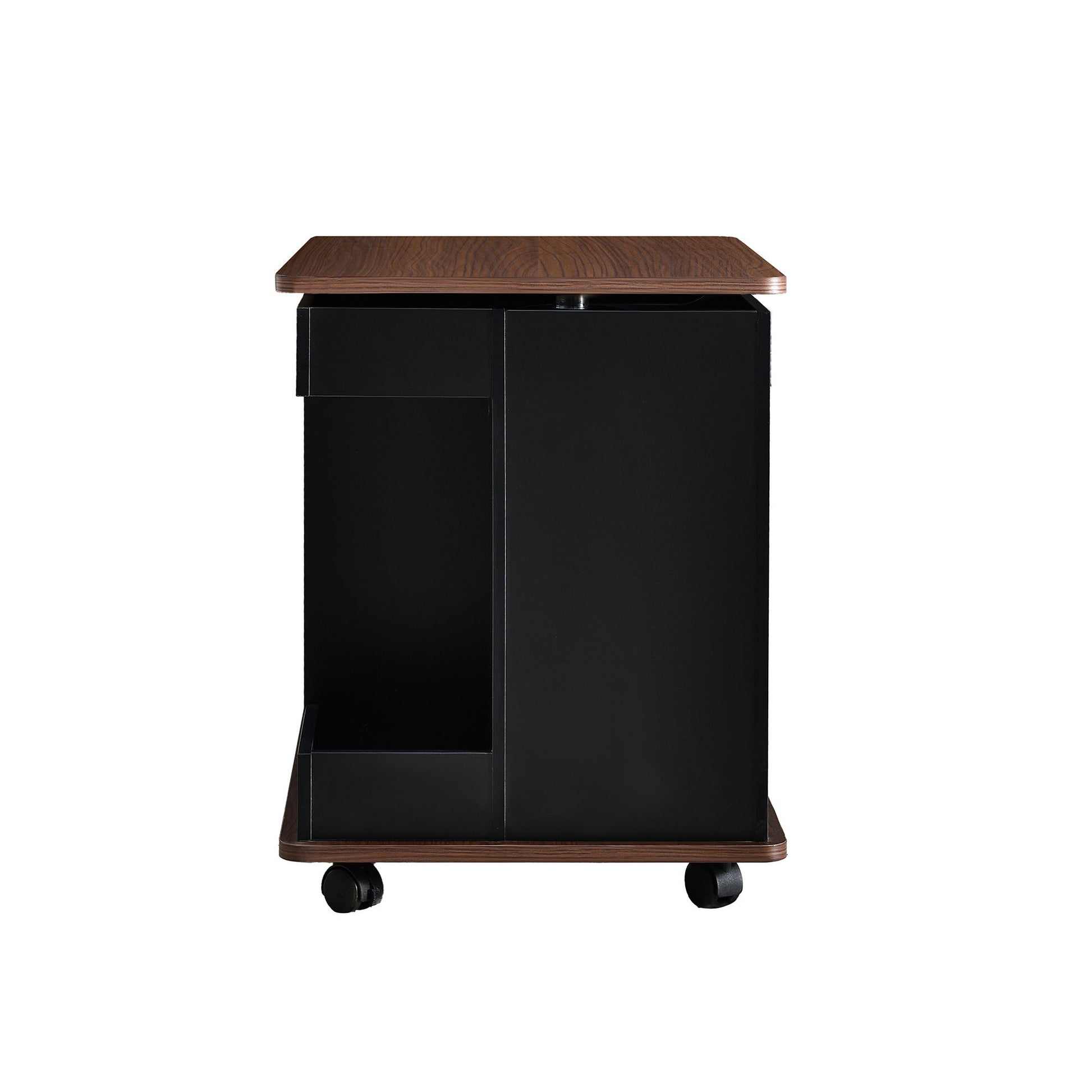 Adjustable End Table With Wheels, Modern Multifunctional Sofa Side Table With Lift Top, 360°Rotating Top And Storage Space For Living Room, Small Space - Black / Brown