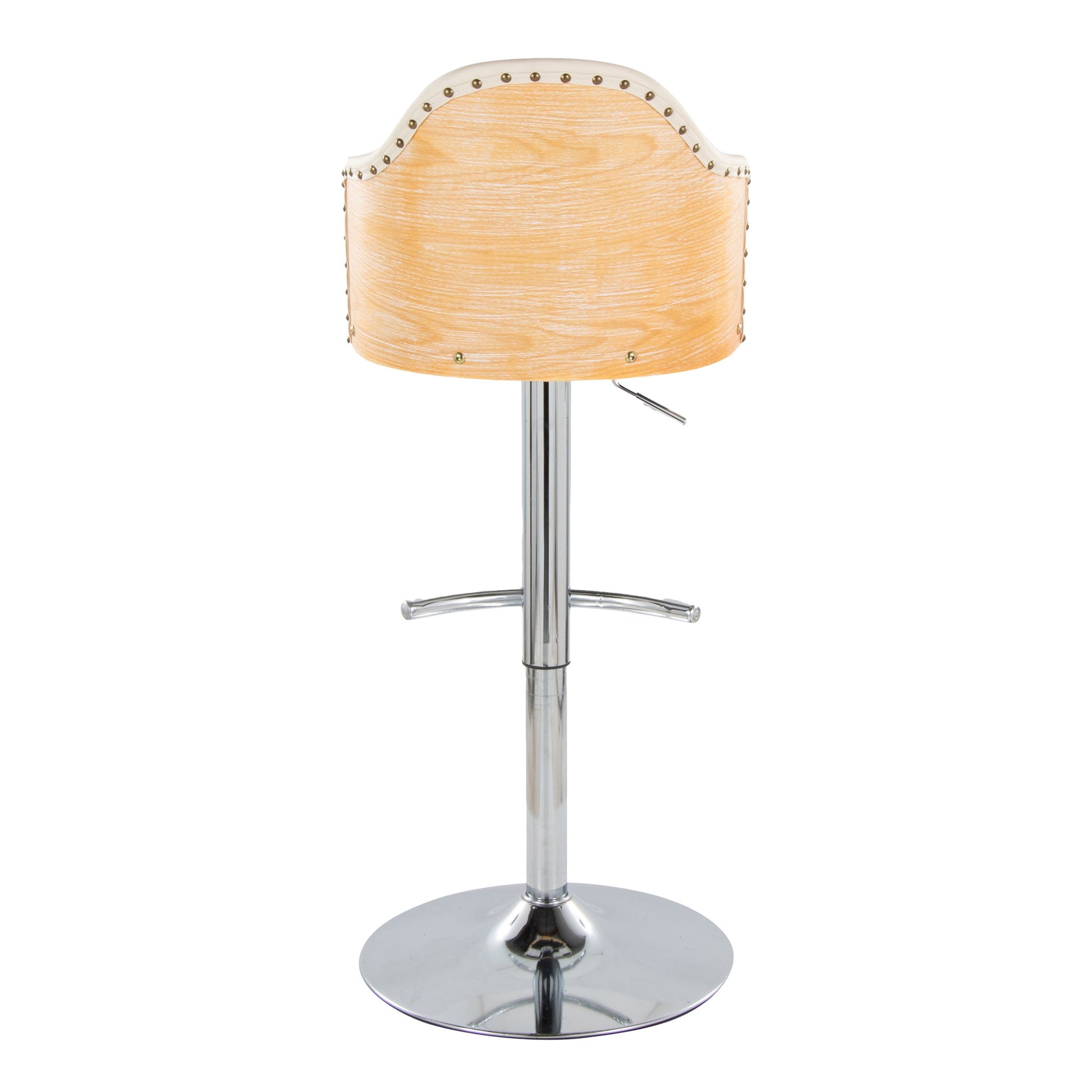 Ahoy - Contemporary Adjustable Barstool With Swivel With Rounded T Footrest (Set of 2) - Chrome / Natural / Cream