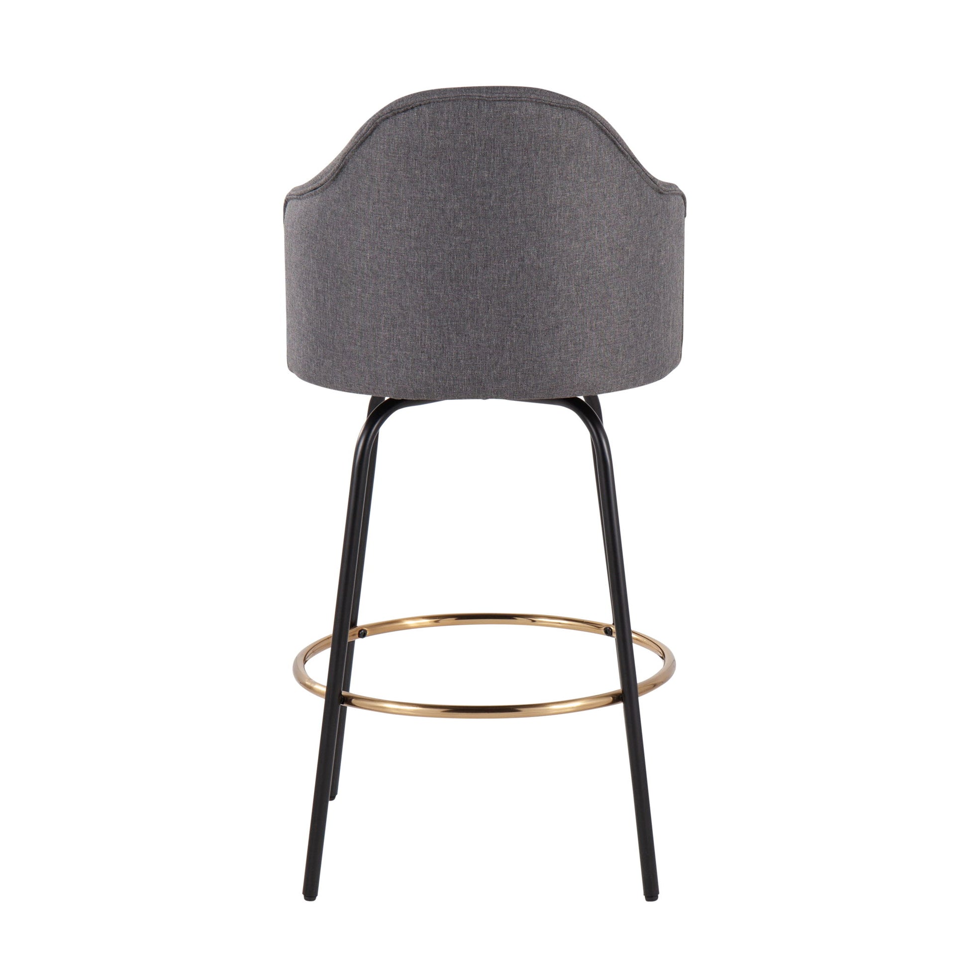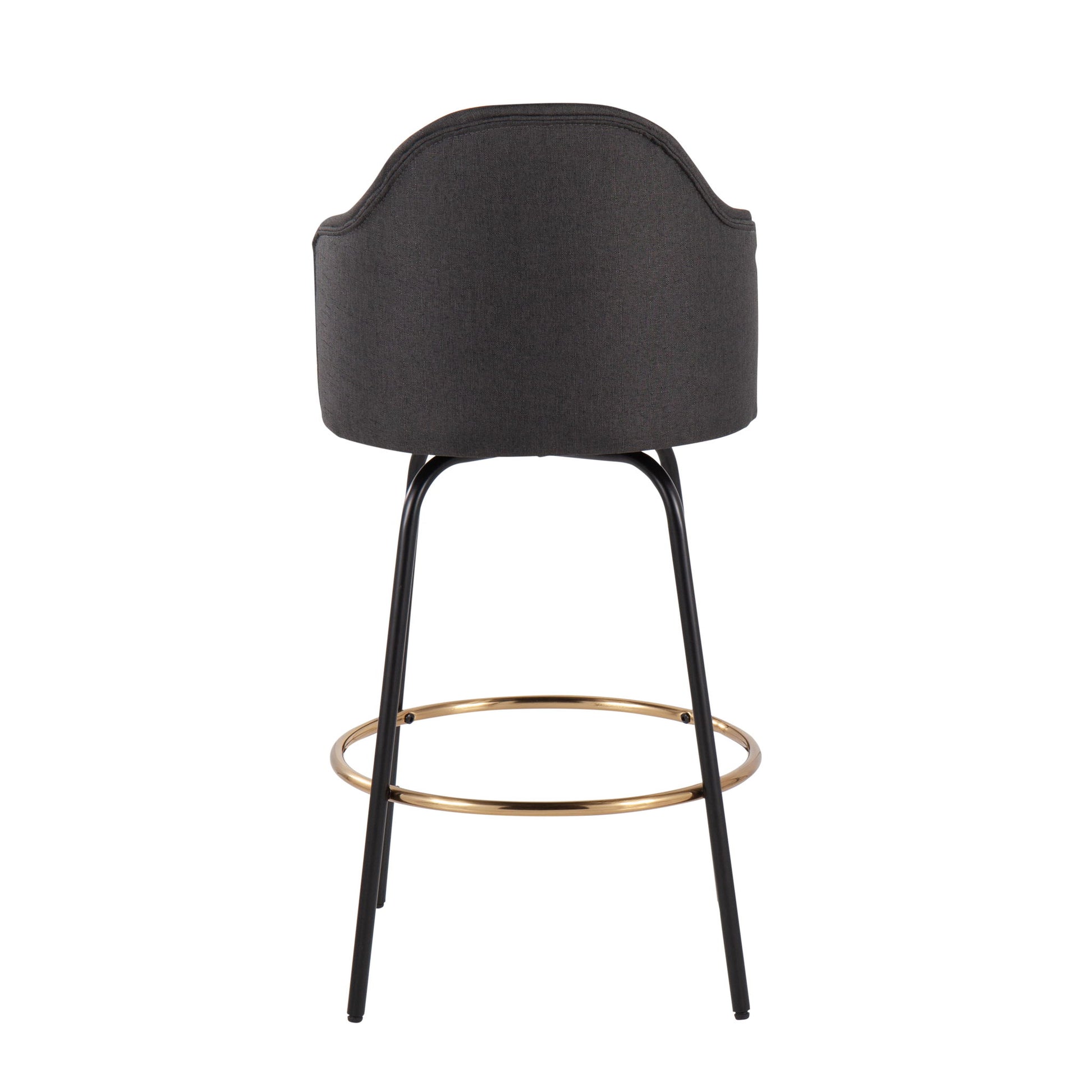 Ahoy - Contemporary Fixed Height Counter Stool Round Gold Footrest (Set of 2) - Charcoal / Black