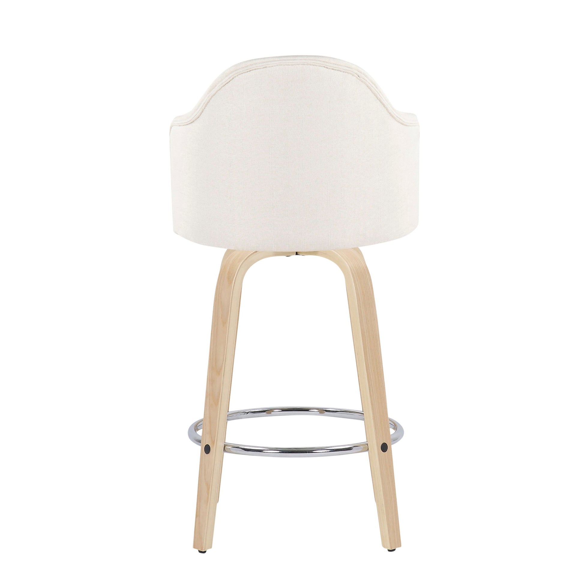 Ahoy - Mid-Century Modern Fixed Height Counter Stool With Natural Legs / Round Chrome Footrest (Set of 2) - Cream