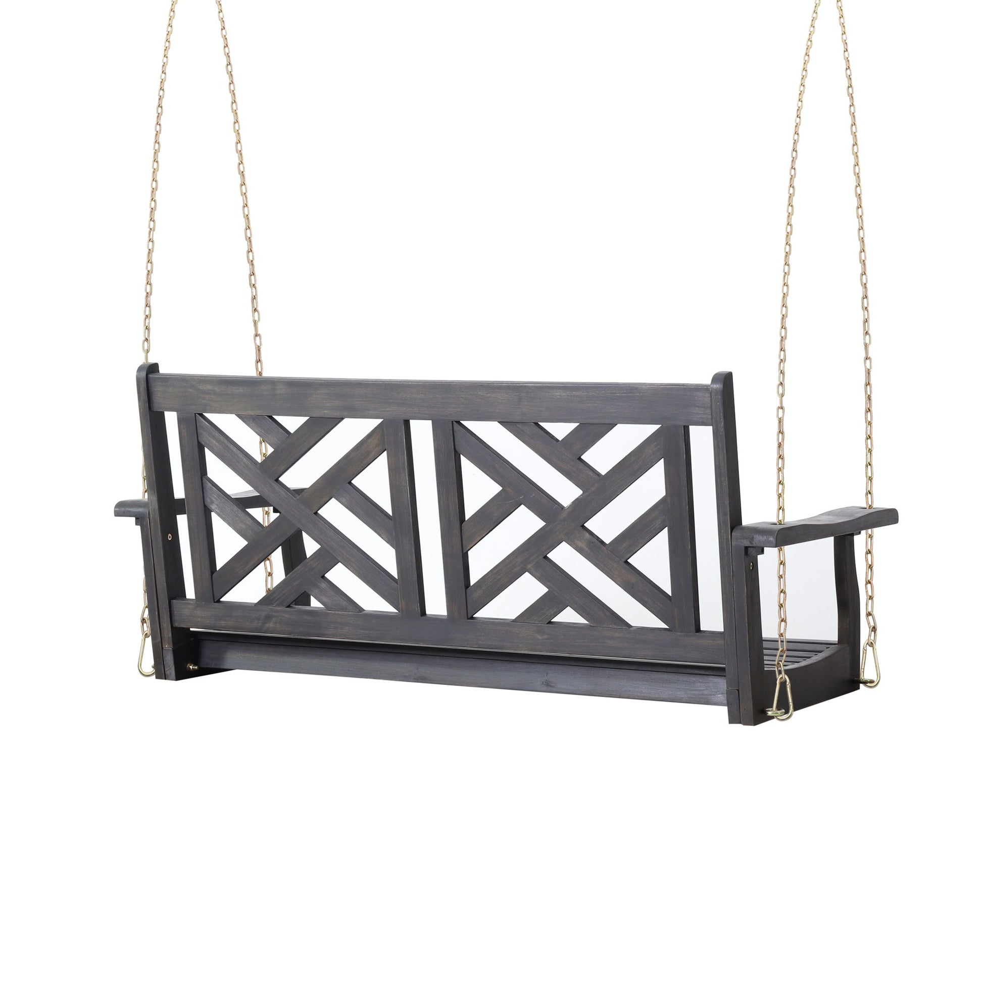 Alejandro - Acacia Wood Porch Swing With Slat Panel Seating - Dark Gray