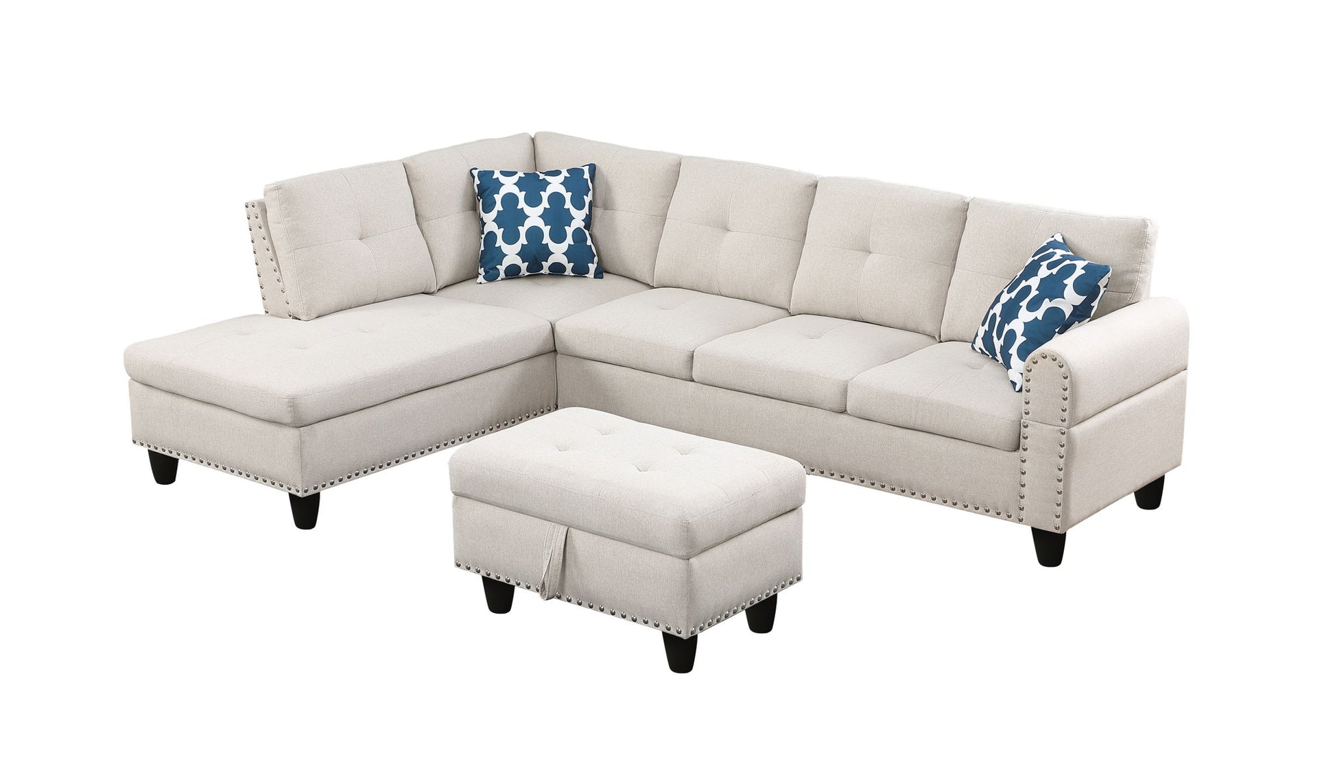 Alger - Wide Left Hand Facing Sofa & Chaise With Ottoman - Beige