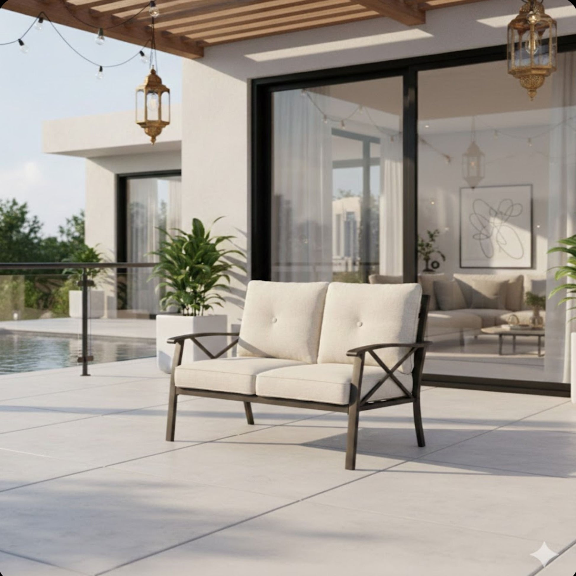 All Weather Loveseat 2 Seats Sofa With Cushions - Light Khaki / Beige