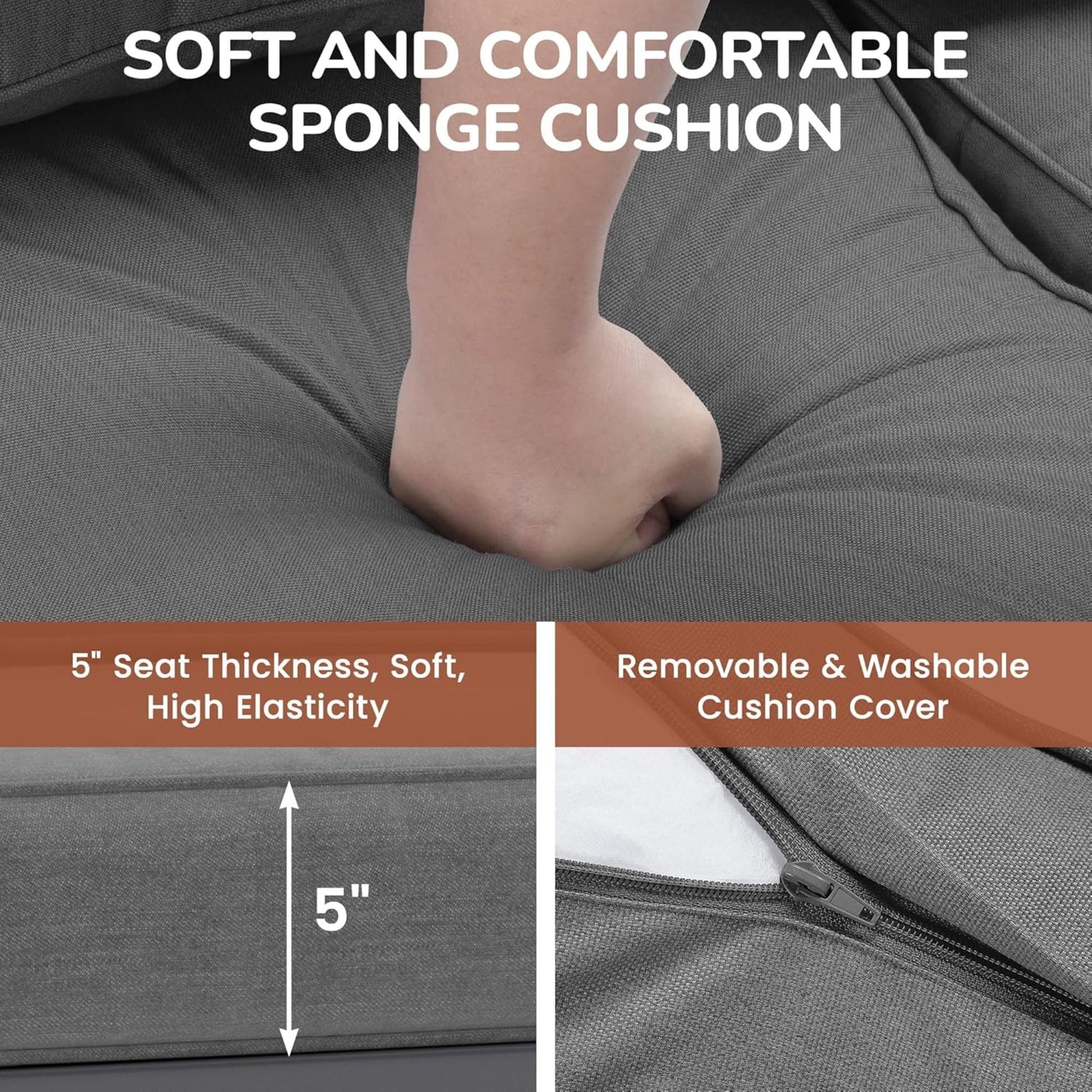 - Easy-Clean Maintenance: Removable zippered cushion covers are machine washable; frame wipes clean with a hose for minimal upkeep.
