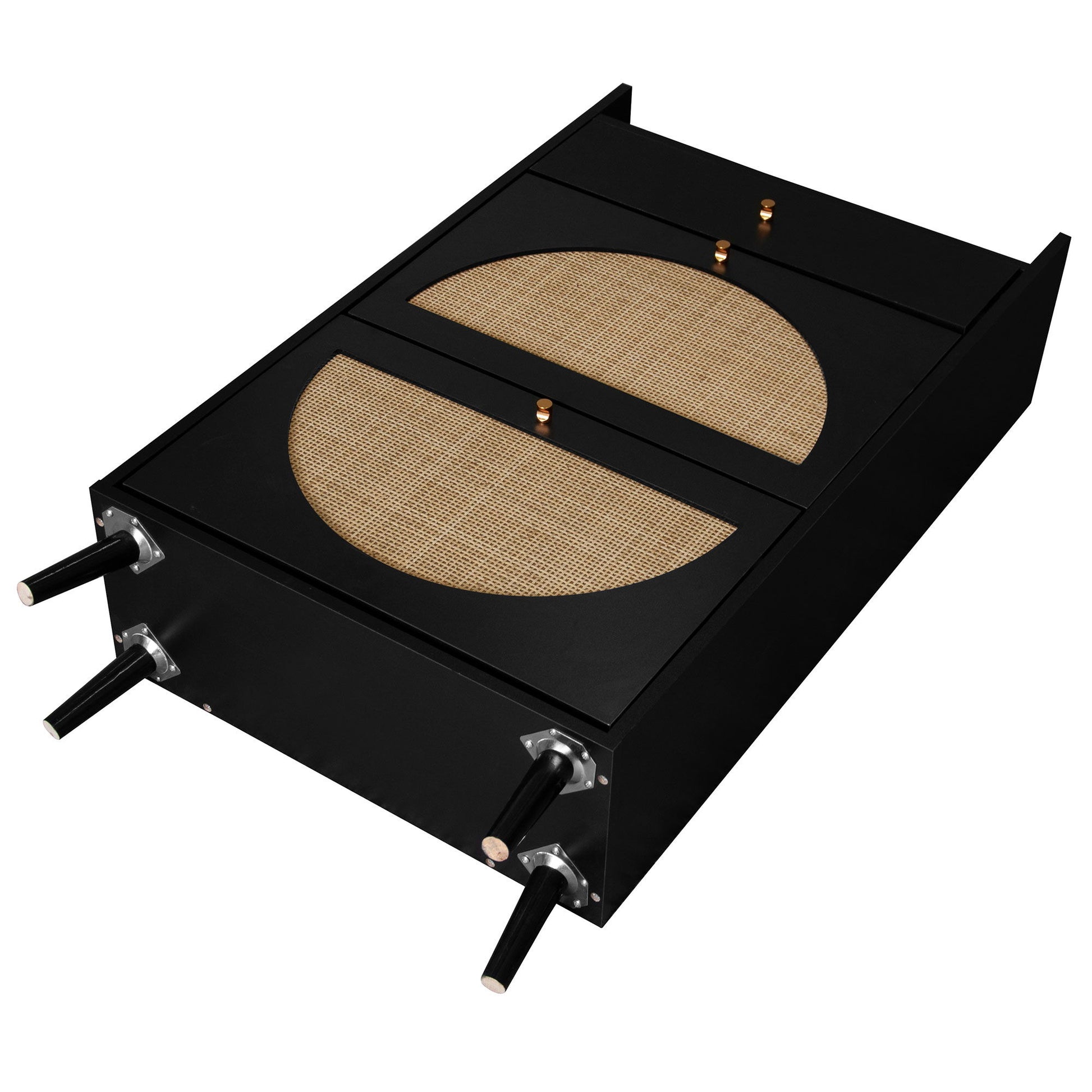 Allen - Rattan 2 Door 1 Drawer Cabinet Shoe Rack For Entrance, Double Layer - Black