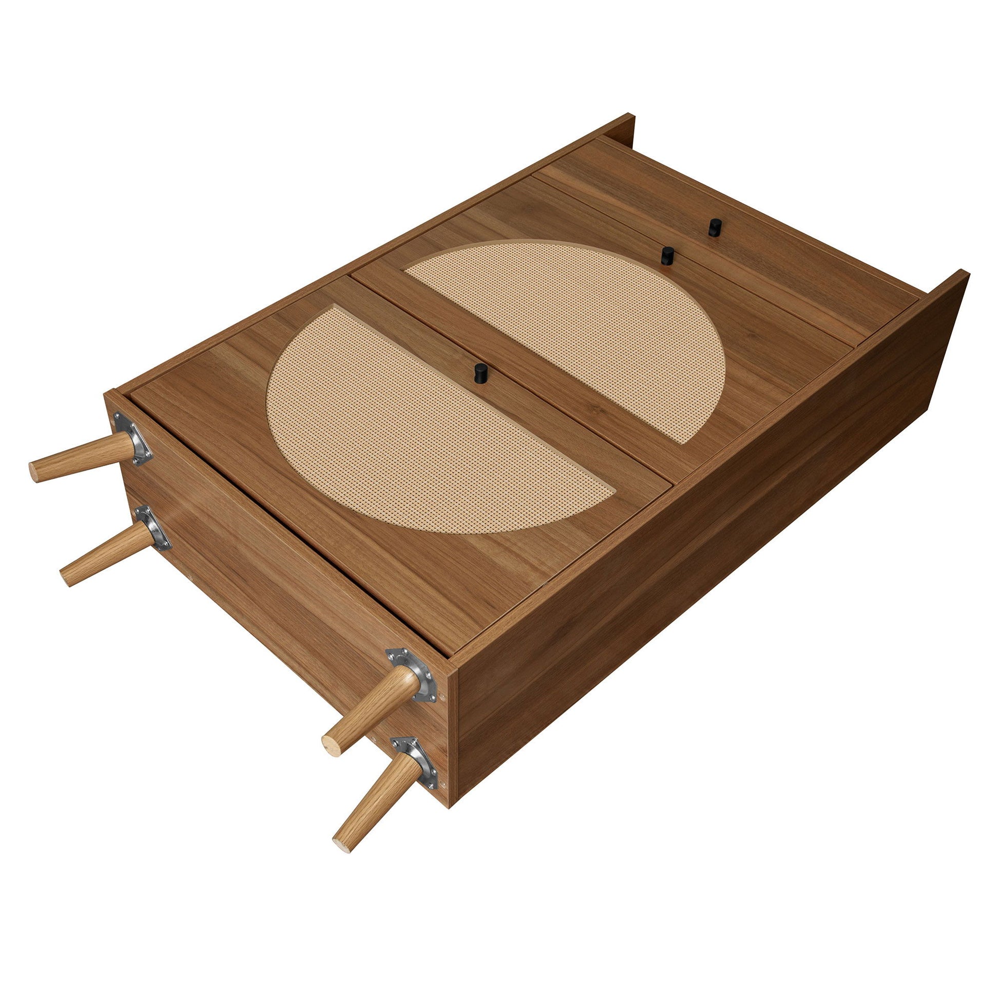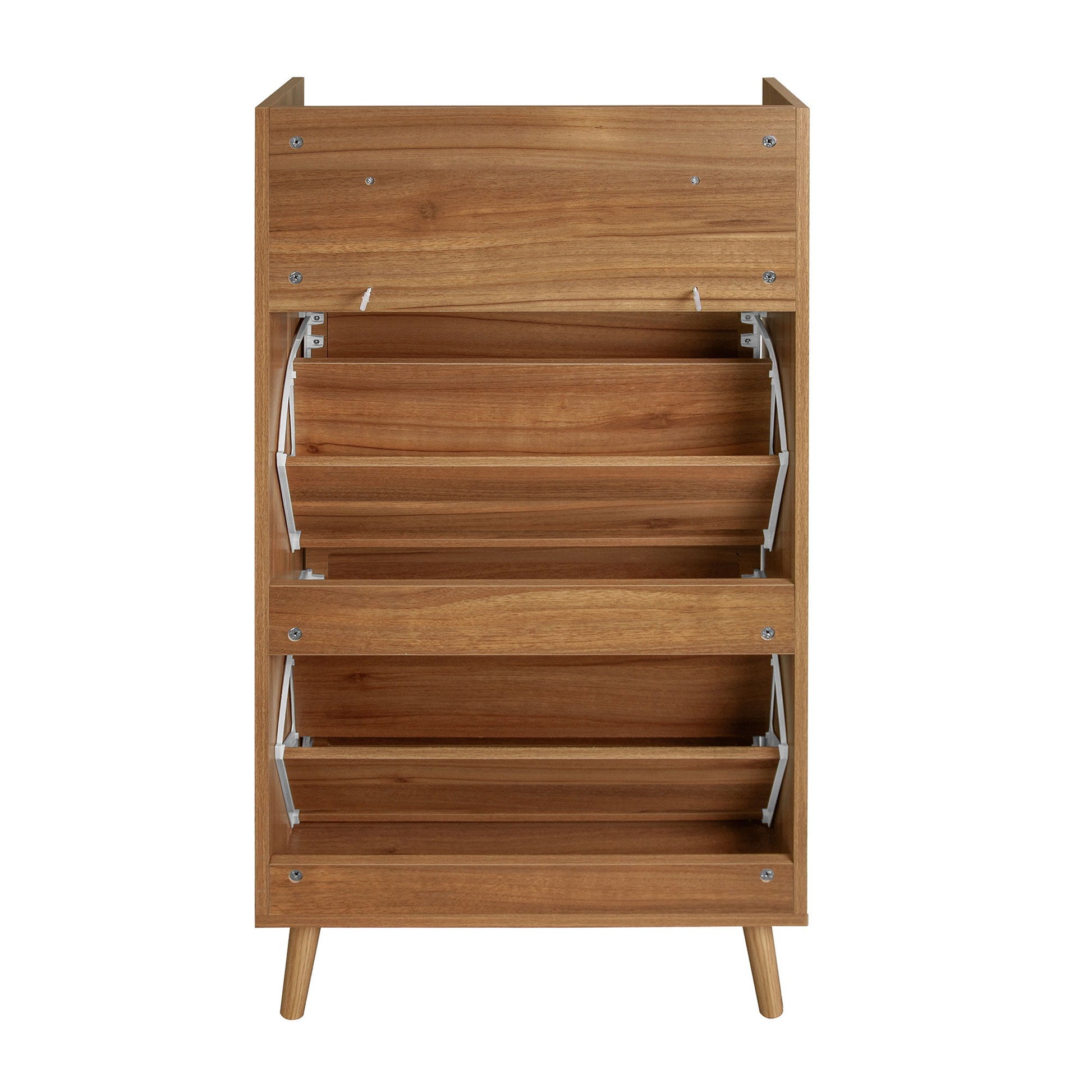 Allen - Rattan 2 Door 1 Drawer Cabinet Shoe Rack For Entrance, Double Layer - Walnut